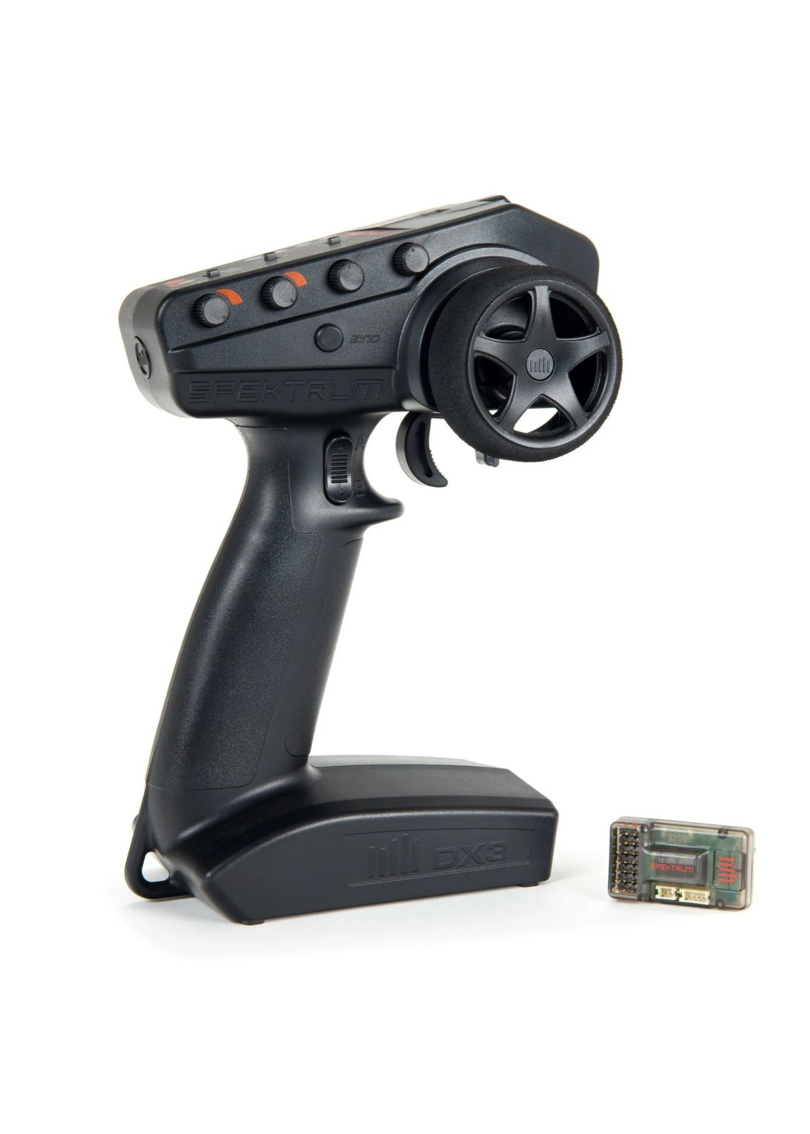 - Spektrum® 3-Channel DX3™ 2.4GHz DSMR® radio and SR6110AT Receiver with AVC® (Active Vehicle Control™)