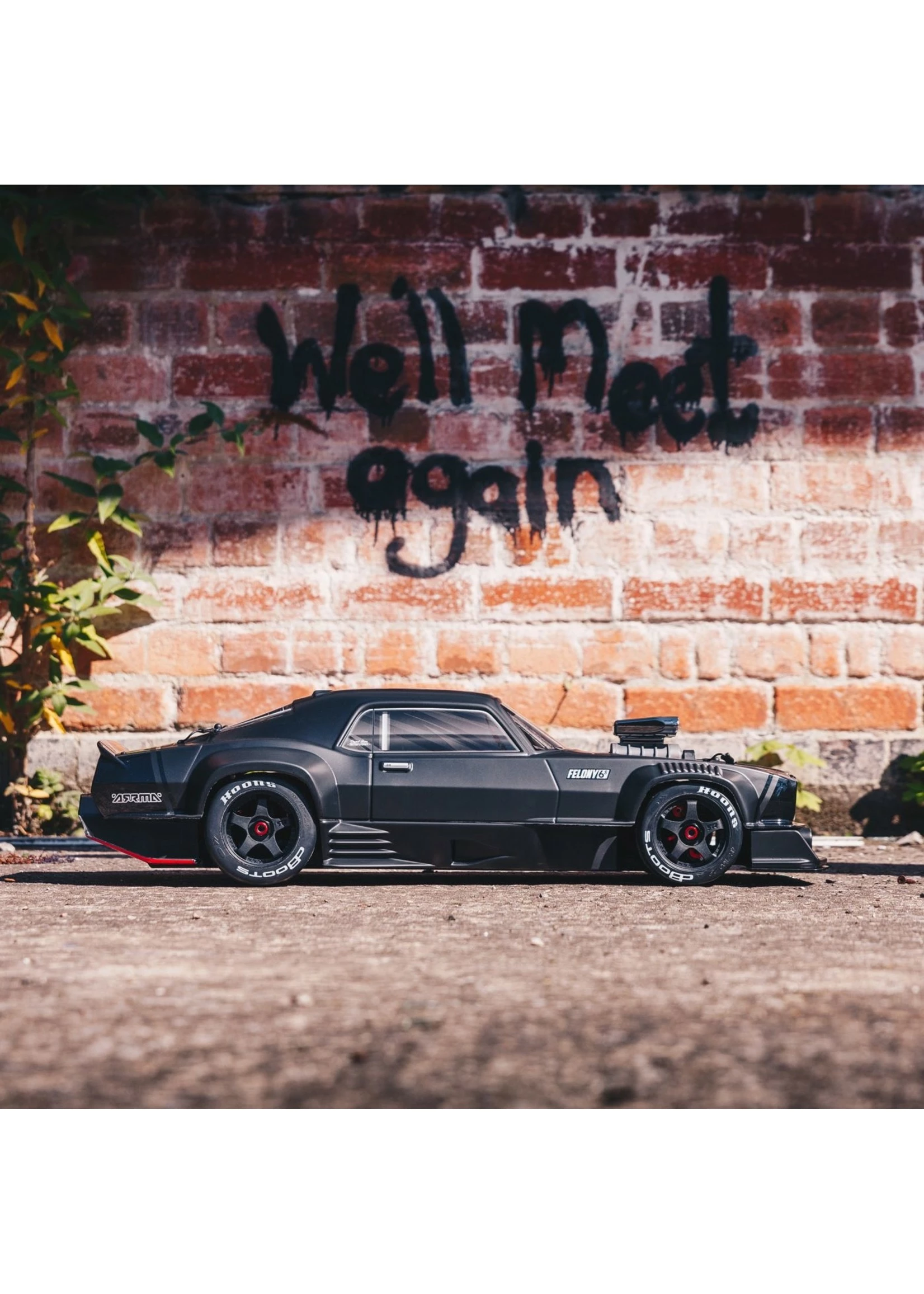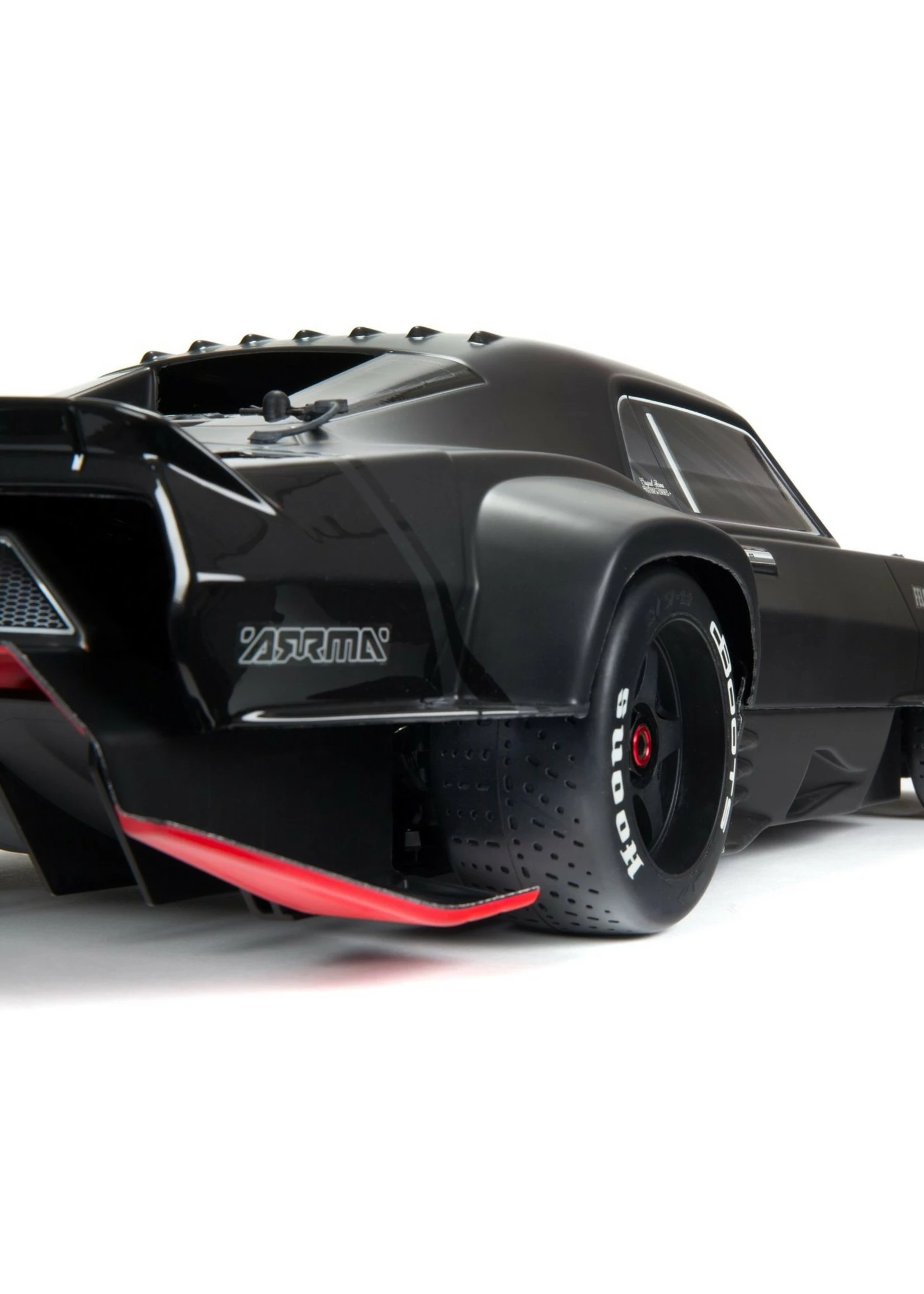 The multi-part, undercut muscle car body design with an aerodynamically adjustable wing delivers standout street bashing style. It can also be customized with the included accessory kit and decals to provide scale muscle car looks the way YOU want them. The FELONY™ 6X BLX Street Bash RTR’s eye-catching appearance extends to the realistic 5-spoke wheels mounted with dBoots® Hoons™ all-road tires. For authentic muscle car handling, ARRMA® engineers have included regular front and larger rear tires, with the front and rear gearbox ratios matched to the tire sizes.