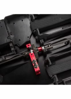 DESIGNED FAST, DESIGNED TOUGH — underneath the aerodynamically engineered body is a 3mm anodized aluminum chassis with a center brace for maximum strength. The heavy-duty 4X4 drivetrain features durable steel drive shafts plus all-metal diff outdrives and gearbox internals. The diff module can be removed by taking out just four bolts, making maintenance as speedy as the LIMITLESS roller itself. A sliding mount makes motor access quick and easy, too.