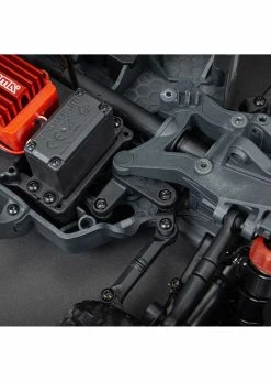 For precise, dependable control, ARRMA® engineers have outfitted this RTR with the 2.4GHz Spektrum™ SLT3™ transmitter and SLR300 receiver. The transmitter is ergonomically designed for long periods of fatigue-free bashing and has a foam wheel for precise fingertip control plus an improved hand grip and trigger feel. New drivers will be able to set throttle limits at 50% or 75% until ready to use the full speed potential. The SLT3™ is compatible with Tactic® SLT™ receivers to run other RTR vehicles you may own, and it includes a third channel to control optional features such as lights and winches on models that have them.