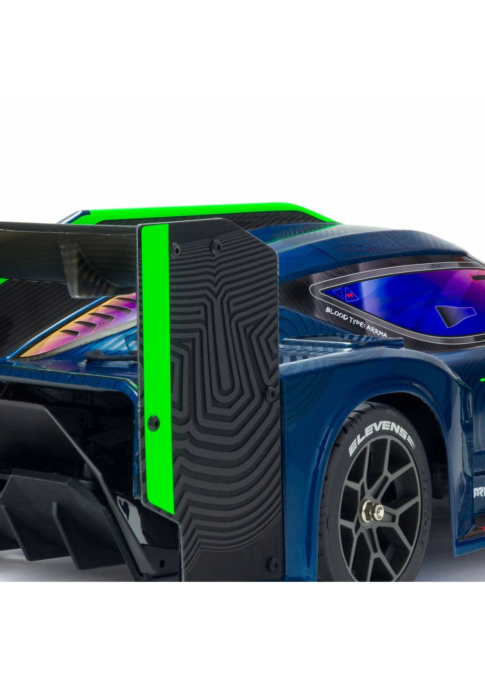 The aerodynamically tuned VENDETTA™ Speed Racer body includes tough high and low downforce wings. It’s available factory-finished in your choice of stunning green or blue matte and gloss effect paint schemes with scale decals.