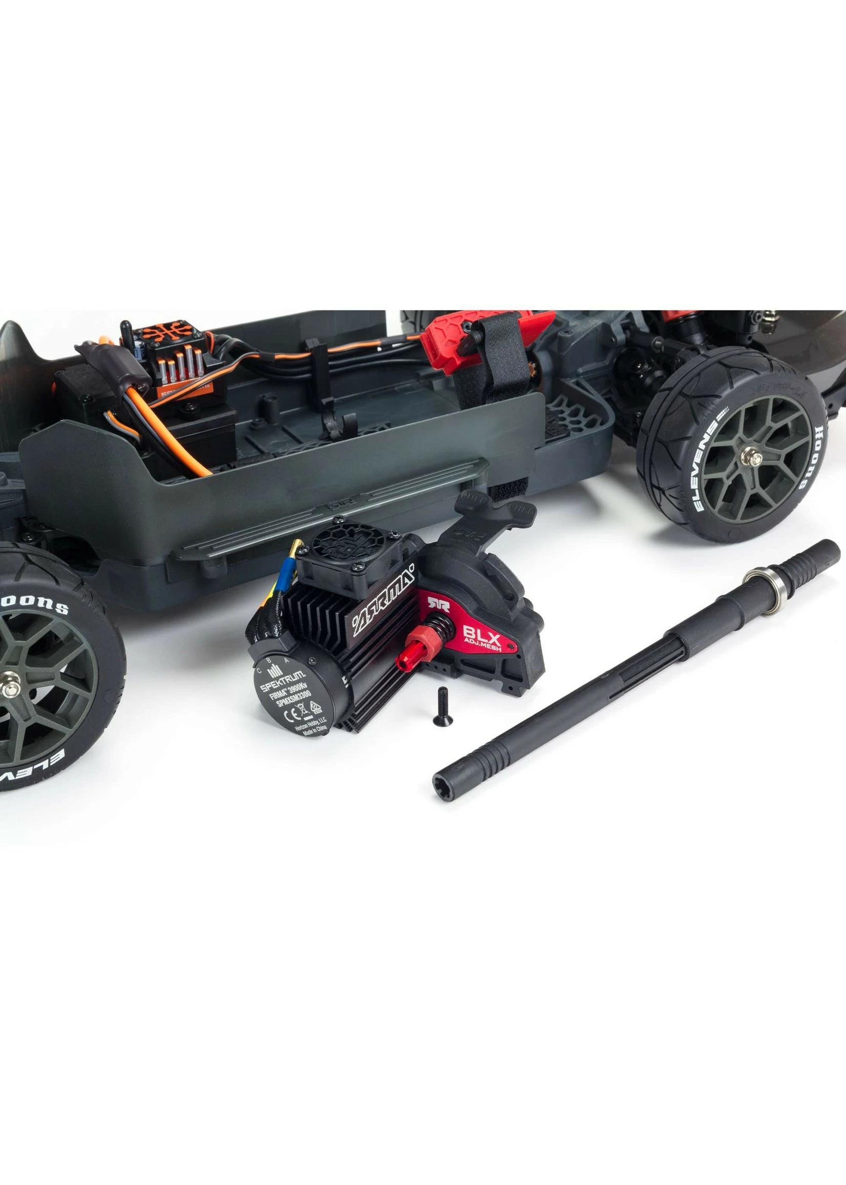 ARRMA® engineers combine the VENDETTA™ 4X4 3S BLX Speed Racer’s speed and toughness with the exclusive control advantages of Spektrum™ electronics. The included DX3 DSMR® 2.4GHz radio system, SR6200A receiver and Firma™ 100A ESC work together to provide the benefits of AVC® (Active Vehicle Control®) and Smart technology straight out of the box.