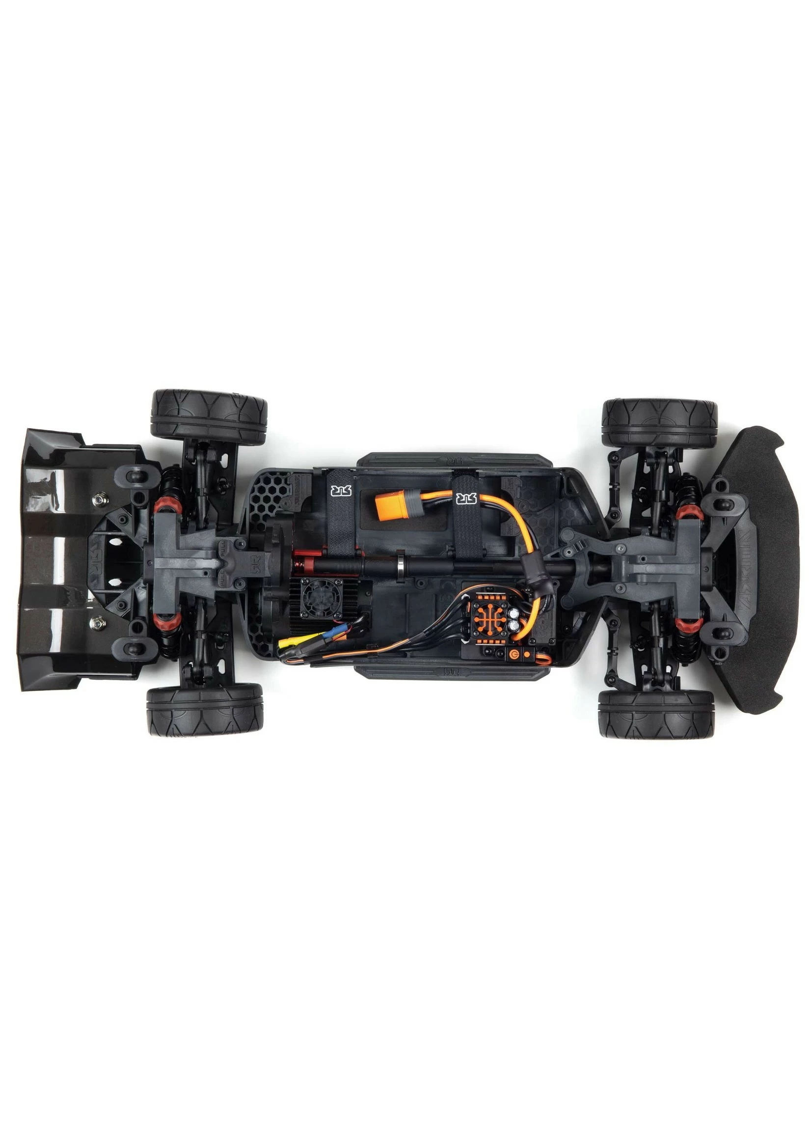 The oil-filled shocks include silicone O-rings and are threaded to allow for easy ride height adjustments. Combined with the front and rear double wishbone suspension, front and rear sway bars, and large rear double diffuser, they give the VENDETTA™ 4X4 3S BLX Speed Racer the ultimate all-road handling.