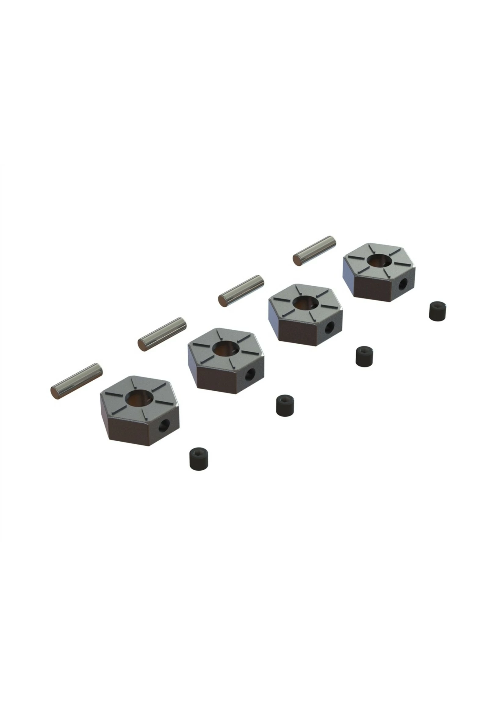 This 12mm wheel hex set provides you with the parts you need to run 12mm hex wheels on your ARRMA vehicle.