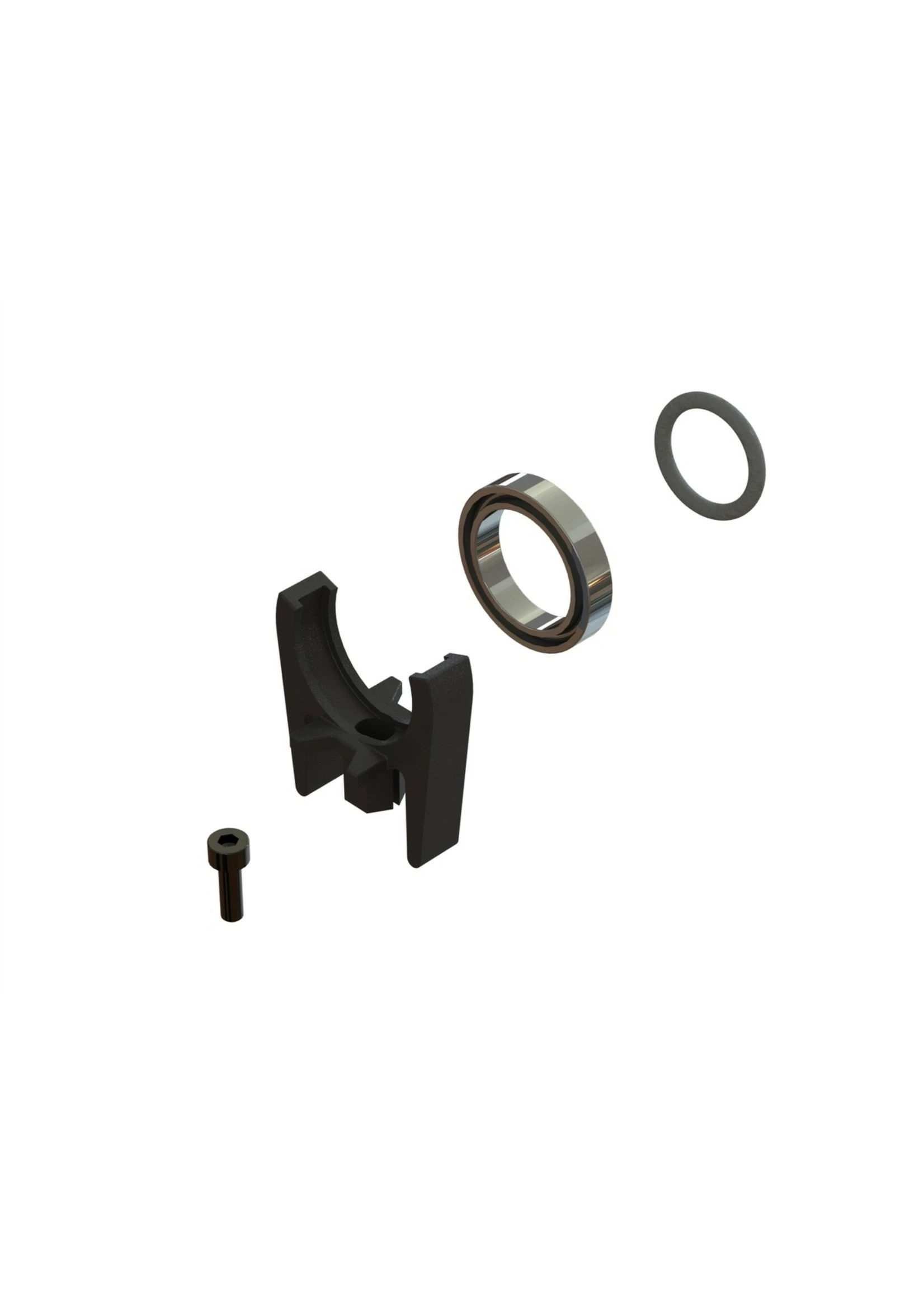 Precisely moulded to accurately locate with the vehicle chassis – Support is retained on the chassis by the included cap head screw – Included high-quality ball bearing fits to center shaft of transmission and then clips into the support – An O-ring is used to retain the ball bearing on the center shaft when the center shaft is removed from the vehicle.