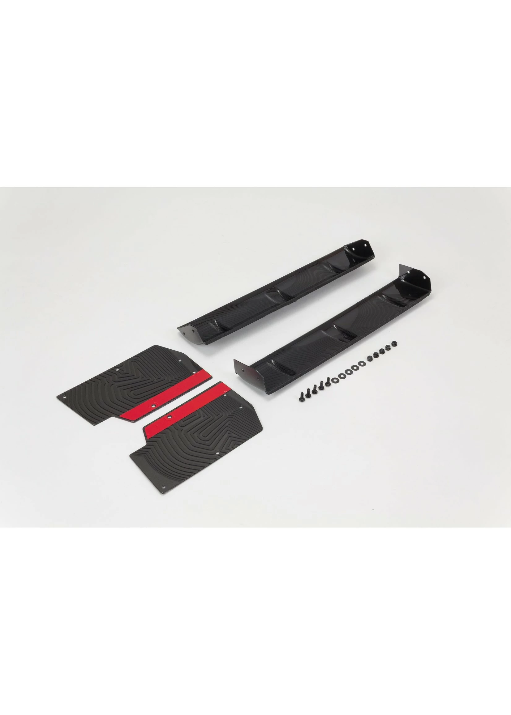 - Includes high and low downforce wings, wing endplates and wing attachment fasteners