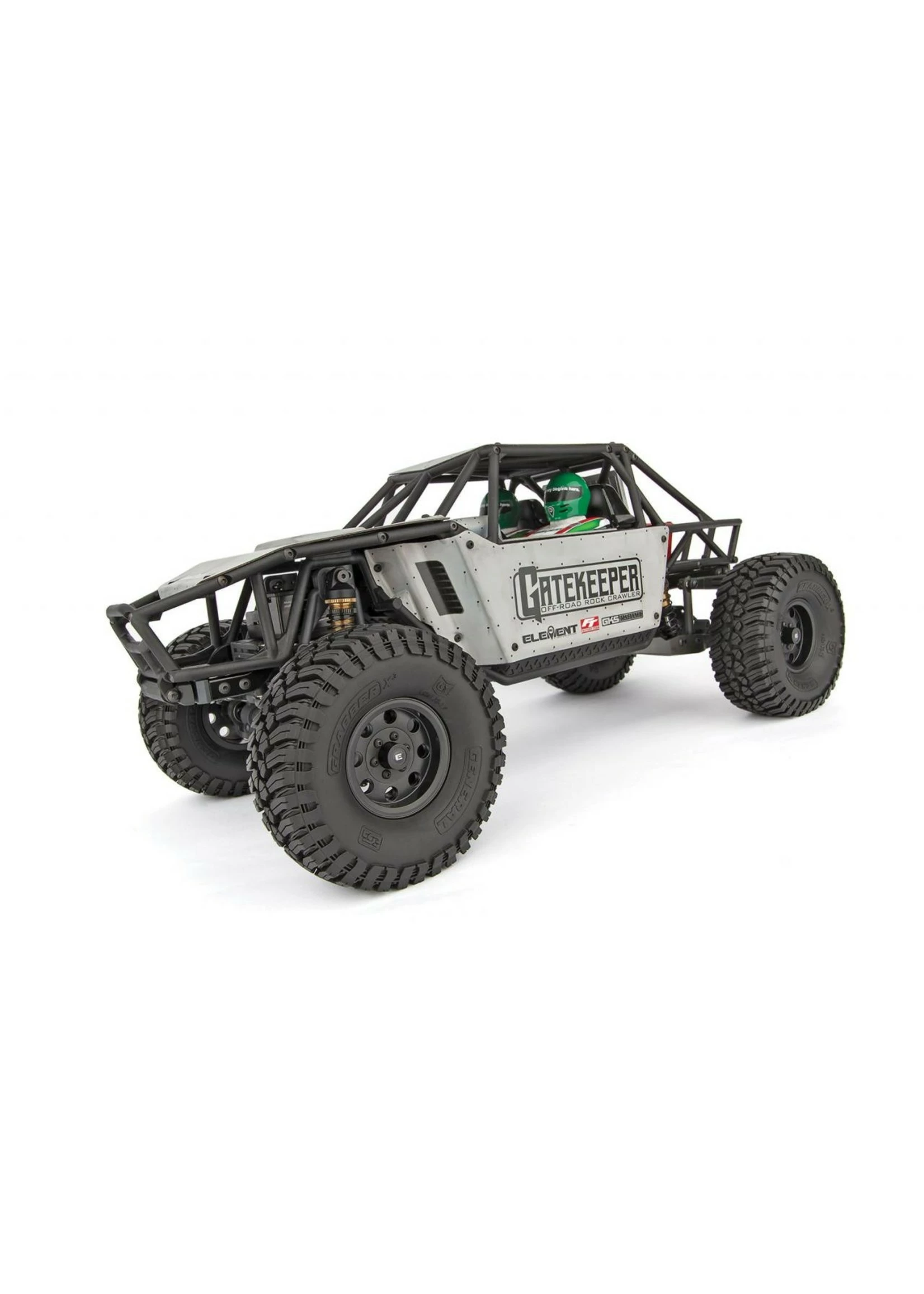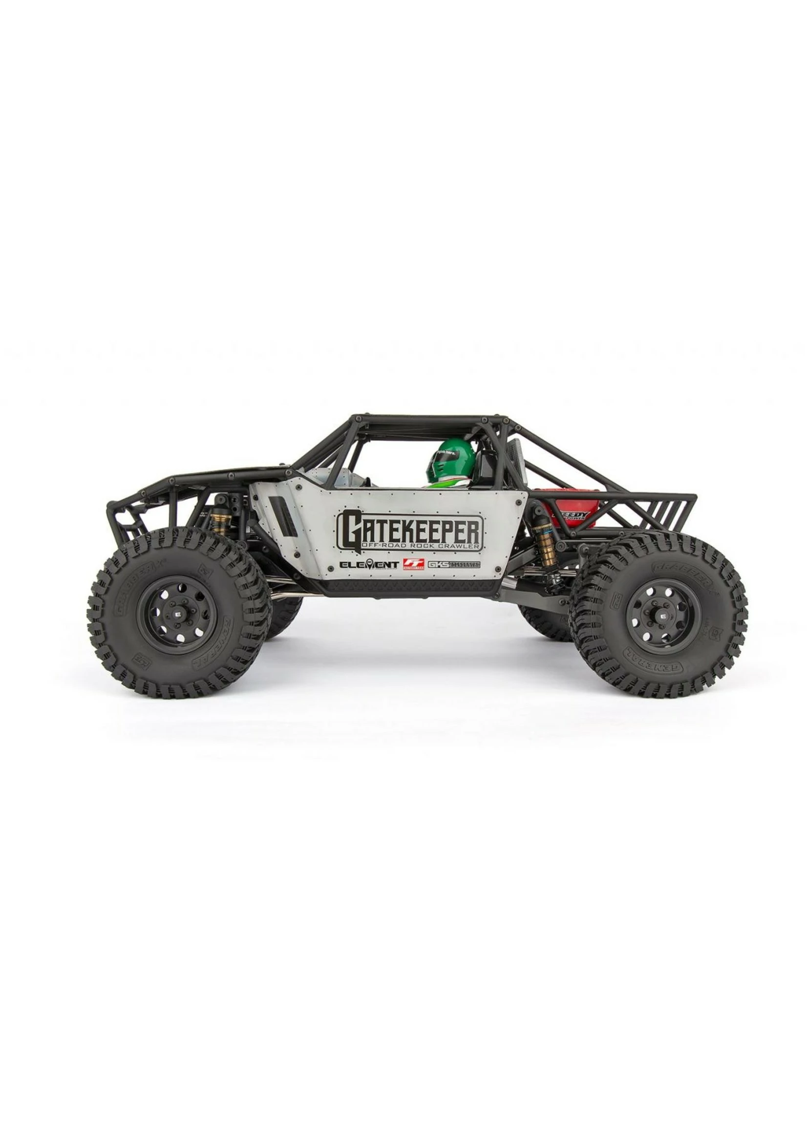 The new Gatekeeper molded cage and polycarbonate panels are the perfect fit for a high-performance rock crawler or trail truck. The included interior with molded driver and passenger heads, along with detailed decal sheet, give the Gatekeeper body awesome scale looks. The removable hinged body mount makes accessing the electronics and working on the chassis a breeze, whether out on the trail or in the garage.