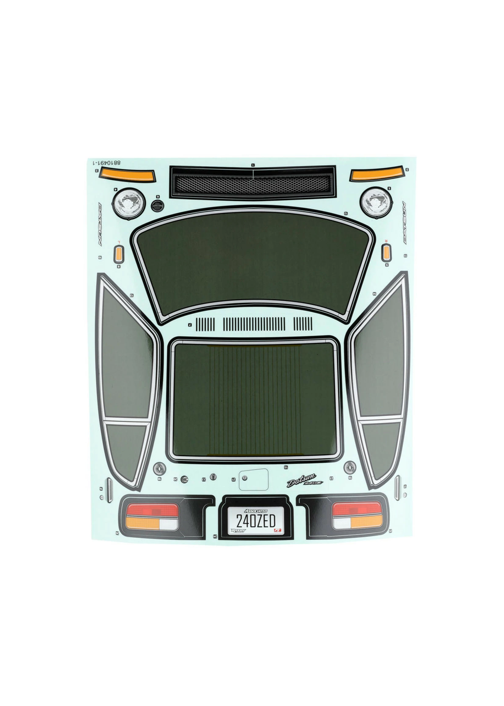 This is a replacement intended for the Team Associated Apex2. Package includes one clear Datsun 240Z body, two decal sheets, plastic body accessories and window masks.