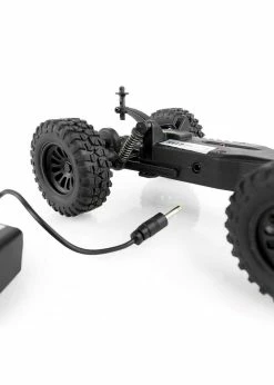 When your offroad thrills exhaust the vehicle’s integrated battery, the convenient built-in transmitter charger makes it easy to get back to full power in less than an hour. A built-in rechargeable battery and 4 AAs are already included in the box! Just charge and drive!