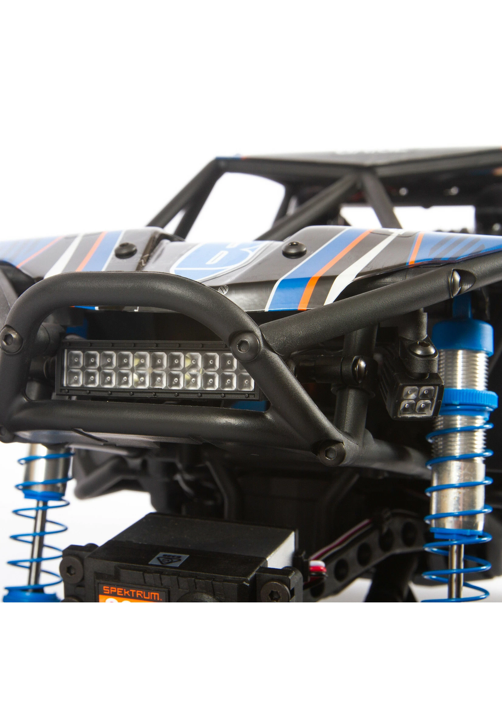The included 3S LiPo capable Dynamite® AE-5L ESC with IC3™ connectors features adjustable drag brake and a light controller with dual LED outputs to accommodate the new LED headlights and tail lights. The RR10 Bomber rock racer now features two forward-facing white LEDs, two white LEDs on the front for rock lights, and a new rear LED light bar with two red LEDs.