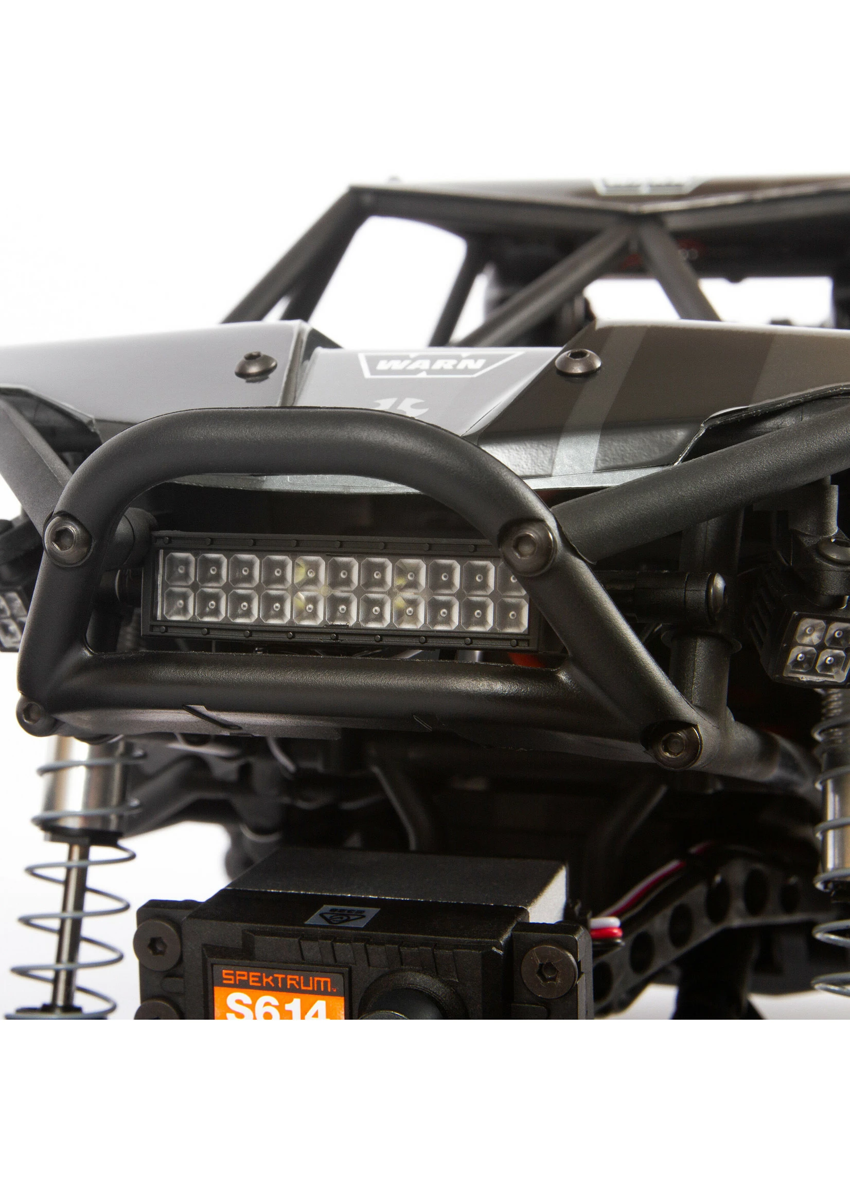 The included 3S LiPo capable Dynamite® AE-5L ESC with IC3™ connectors features adjustable drag brake and a light controller with dual LED outputs to accommodate the new LED headlights and tail lights. The RR10 Bomber rock racer now features two forward-facing white LEDs, two white LEDs on the front for rock lights, and a new rear LED light bar with two red LEDs.