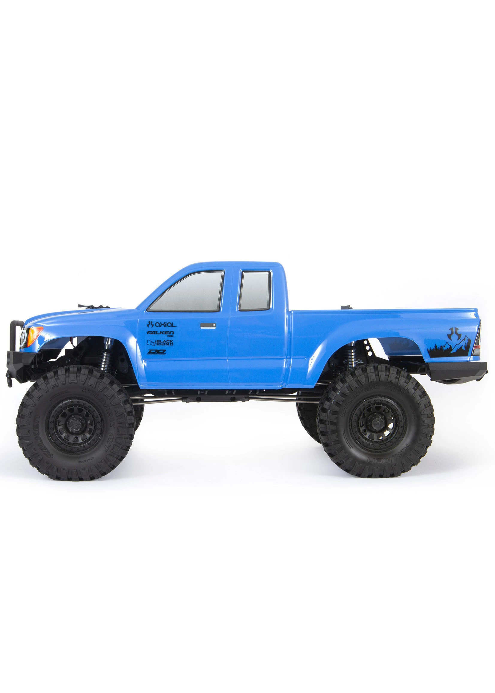 Officially licensed Black Rhino wheels add scale looks. The R35 compound Falken Wildpeak tires included with the SCX10™ III Base Camp™ 4WD provide good ground clearance and a secure grip on dirt, rocks, and all other off-road surfaces.