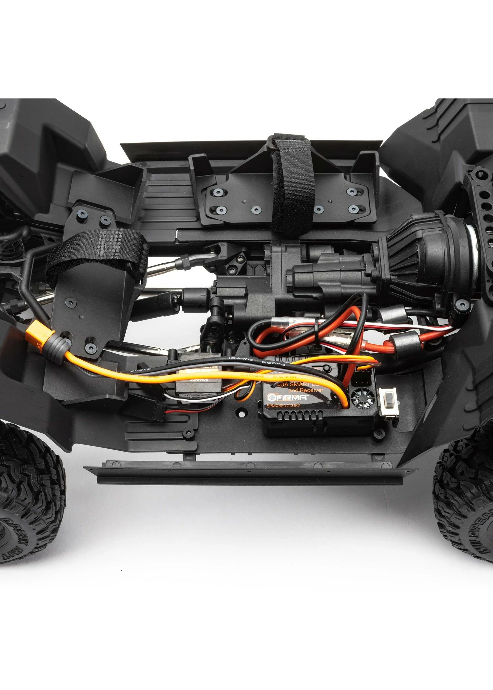 The fully assembled RTR vehicle comes with a Spektrum™ DX3™ radio featuring exclusive DSMR® technology for superior range, response, and interference resistance. It’s also compatible with the Smart telemetry potential provided by the installed Spektrum Firma™ Smart 40A ESC/receiver. Using a Spektrum Smart LiPo pack, you can follow on-board battery capacity on the transmitter’s voltage level indicator while driving with confidence in any weather and trail conditions — the electronics are protected by a waterproof design.