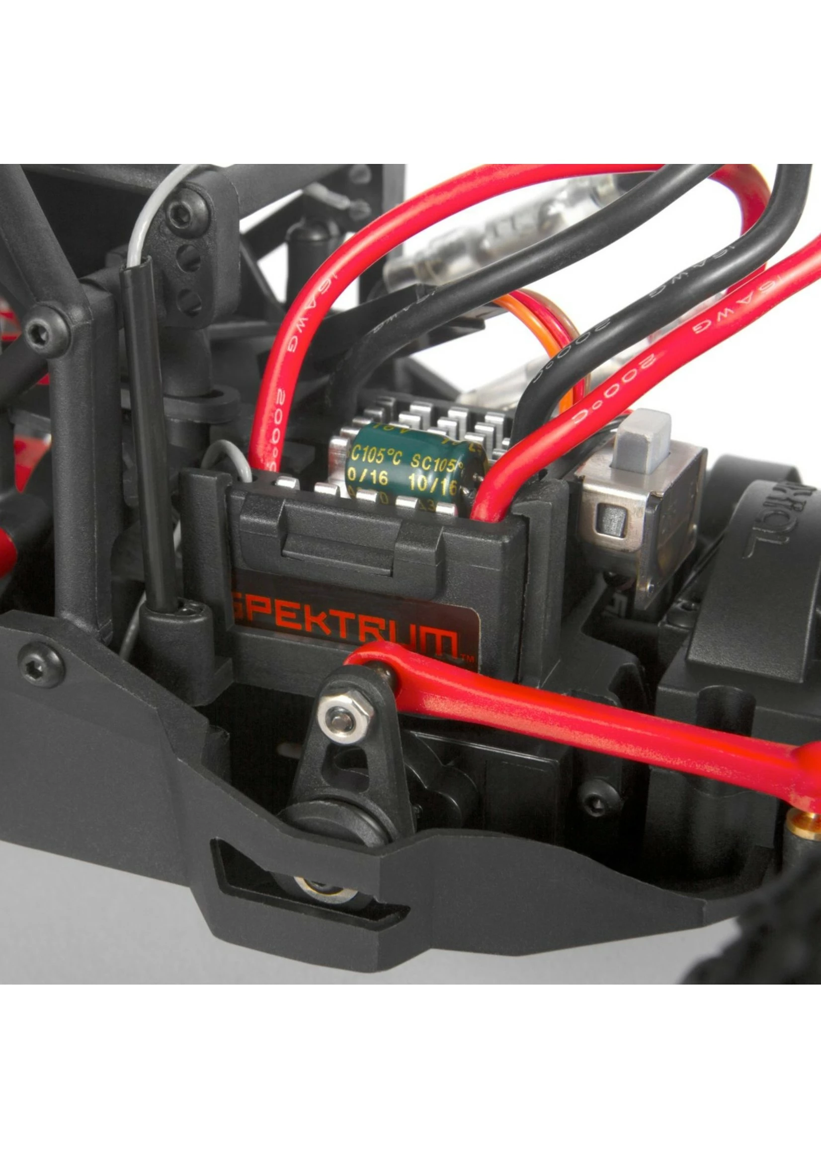 Before the Yeti, the only place to find an independent suspension with floating solid rear axle was in full-size off-road vehicles. Axial carried its advantages over into RC rock racers and crawlers. The suspension design give the Yeti Jr responsive handling, increased clearance, and improved stability at high speeds. Its included 380-size motor adds the perfect amount of speed and torque. When that muscle meets the tread of the Maxxis® Bighorn 2.0 radial tires, you’ve got all the traction you need for fast, smooth rides over virtually any surface.