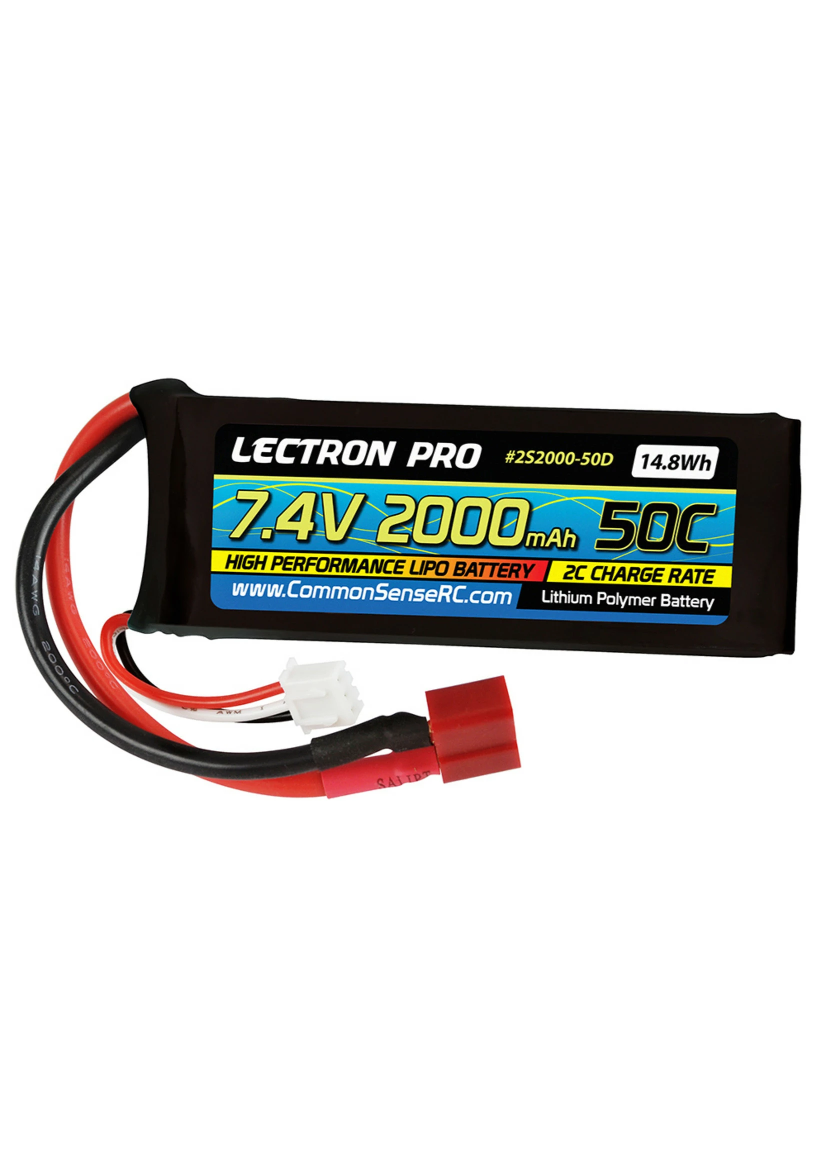 Common Sense RC 2S2000-50D – 7.4V 2000mAh 50C Lipo Battery with Deans-Type Connector