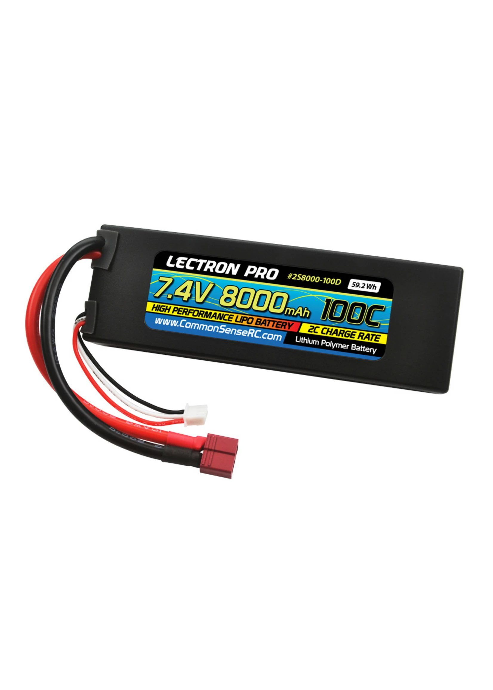 Common Sense RC 2S8000-100D – 7.4V 8000mAh 100C Lipo Battery with Deans-Type Connector