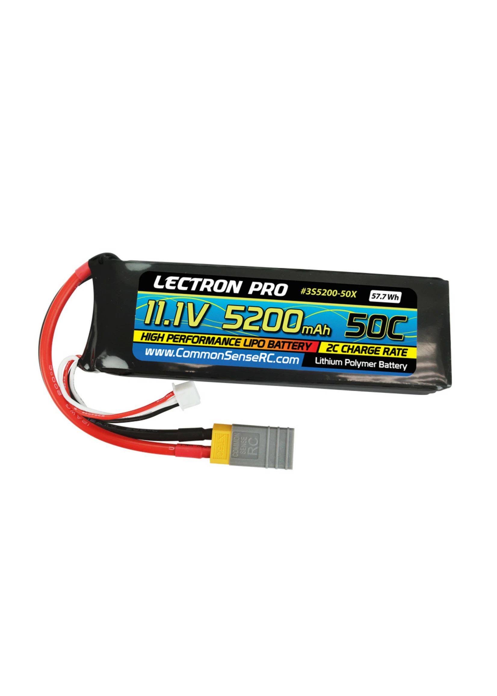 Common Sense RC 3S5200-50X – 11.1V 5200mAh 50C Lipo Battery with XT60 Connector + CSRC adapter