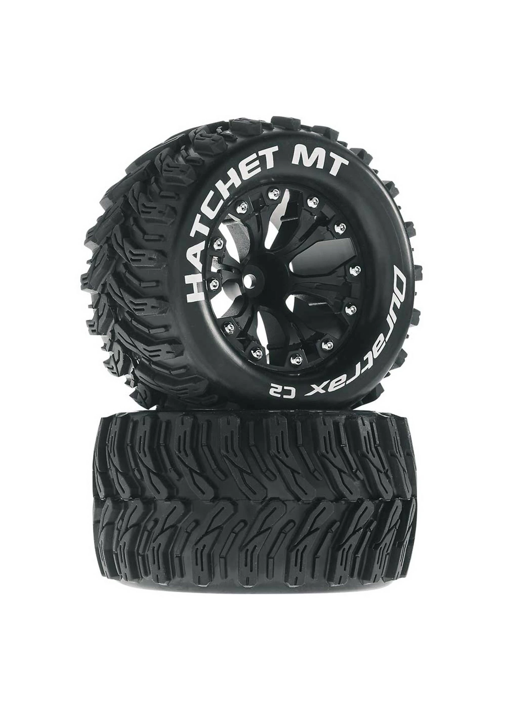 - “Hatchet MT” and “Duratrax” printed in white on sidewall