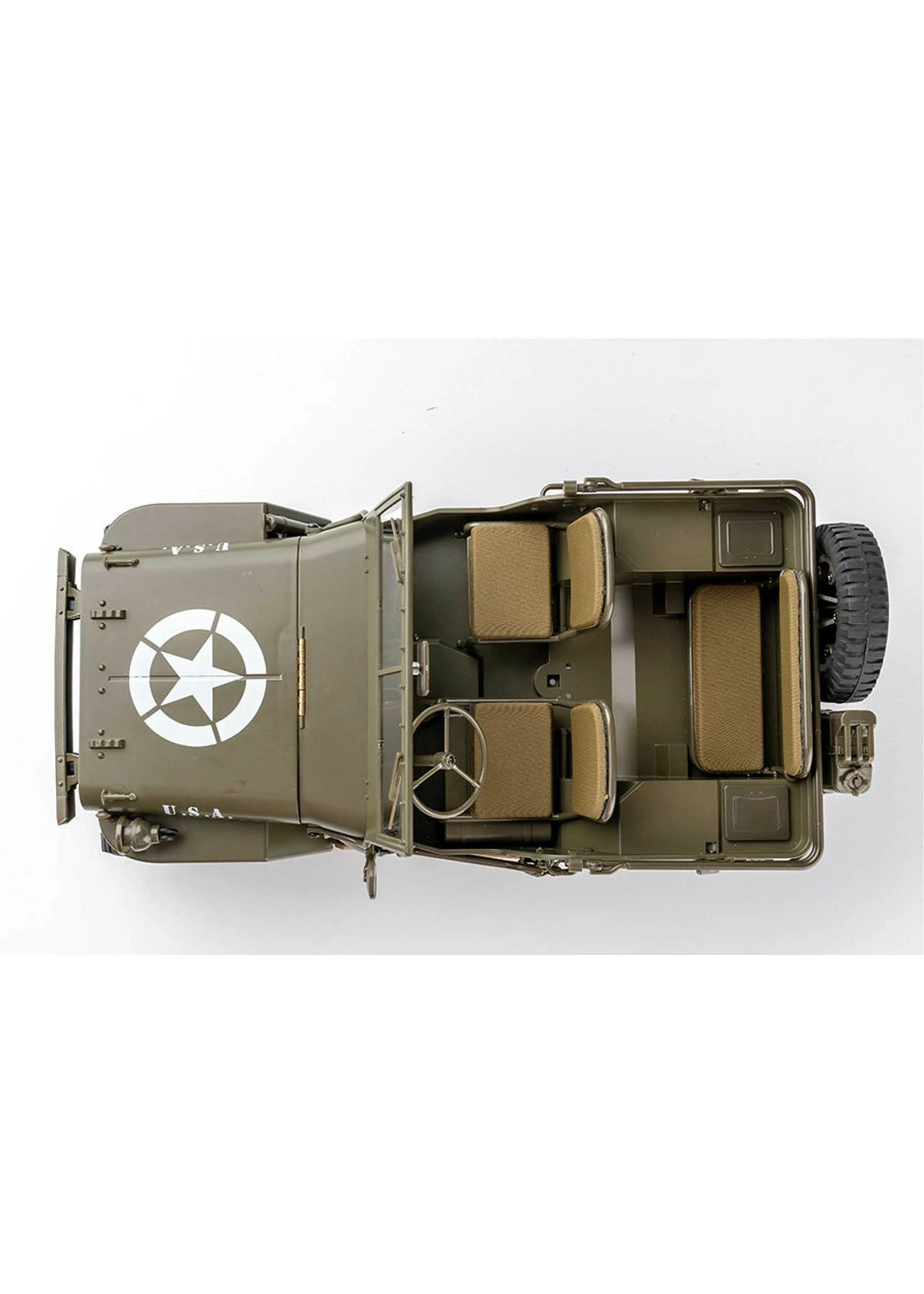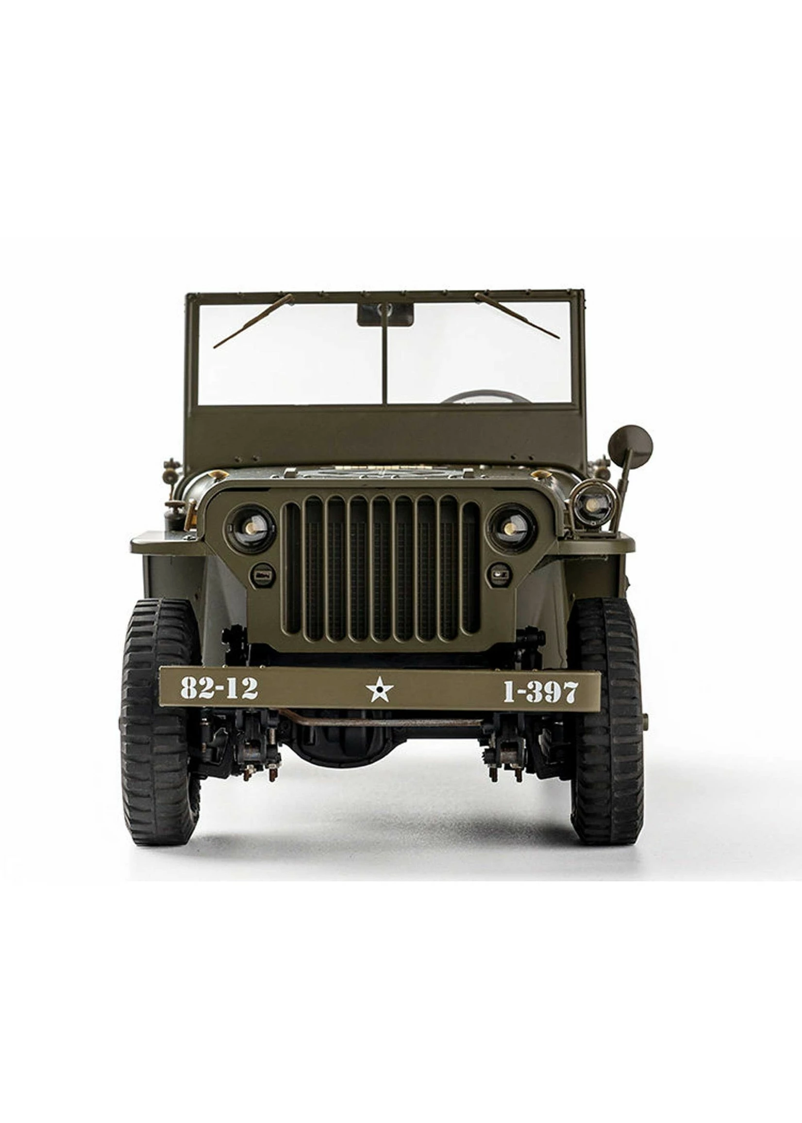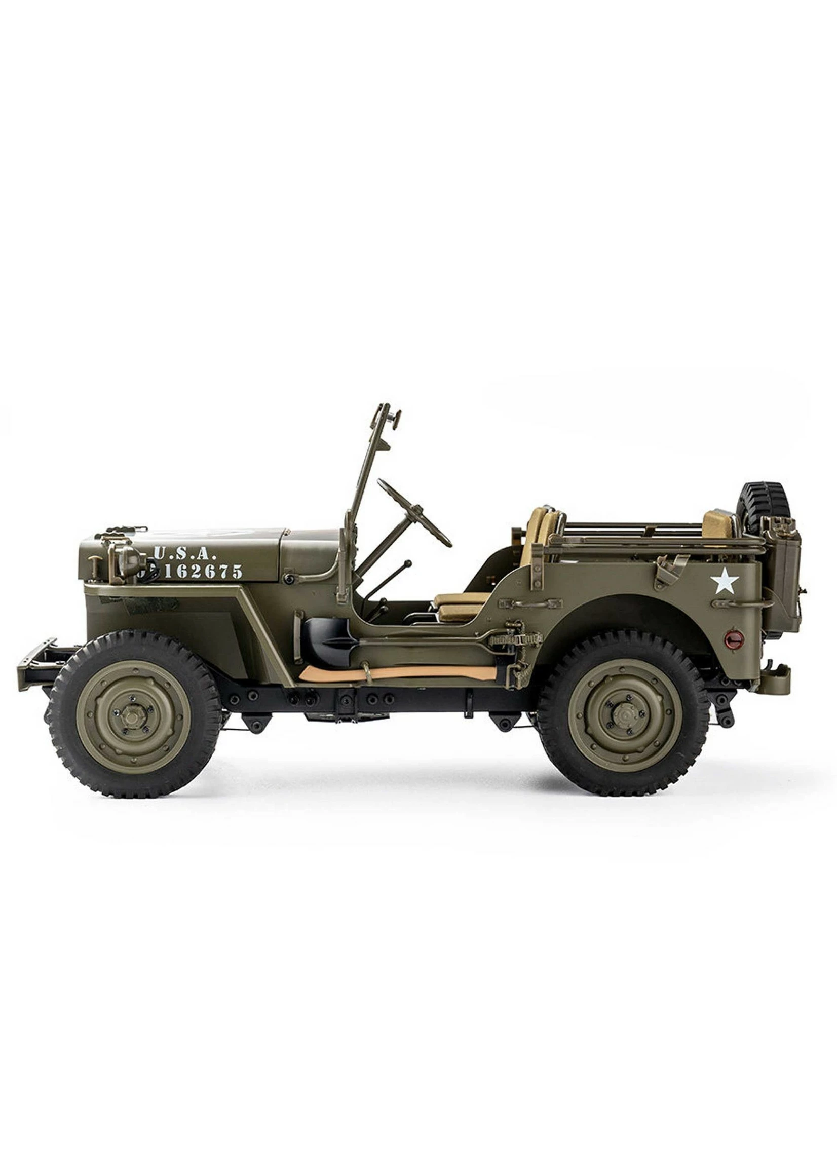- Realistic scale detailing including canvas seats, rear-view mirrors, dashboards, leaf springs & dampers, tires and metal ladder frame rails.