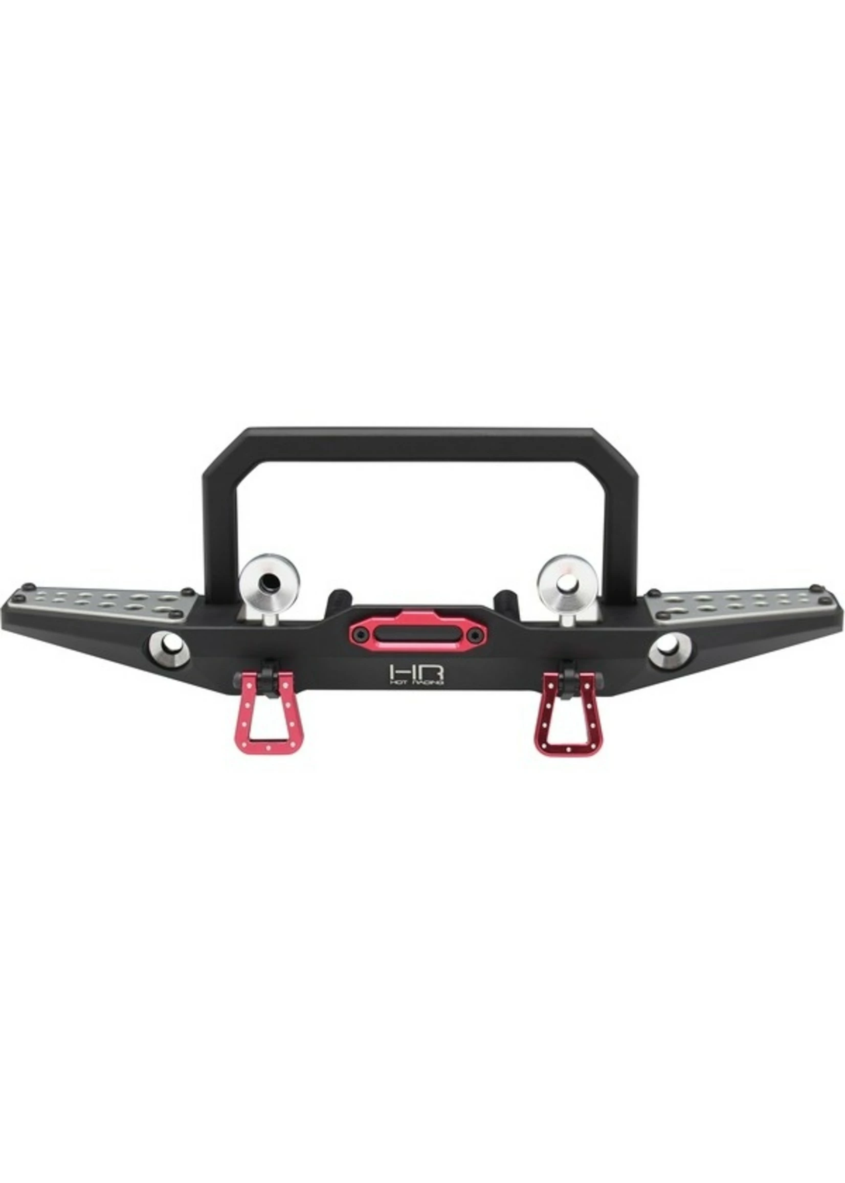 Hot Racing aluminum front bumper with LED light buckets, winch mounting pattern, and tow shackles for the Traxxas TRX-4 or Axial SCX10 II.