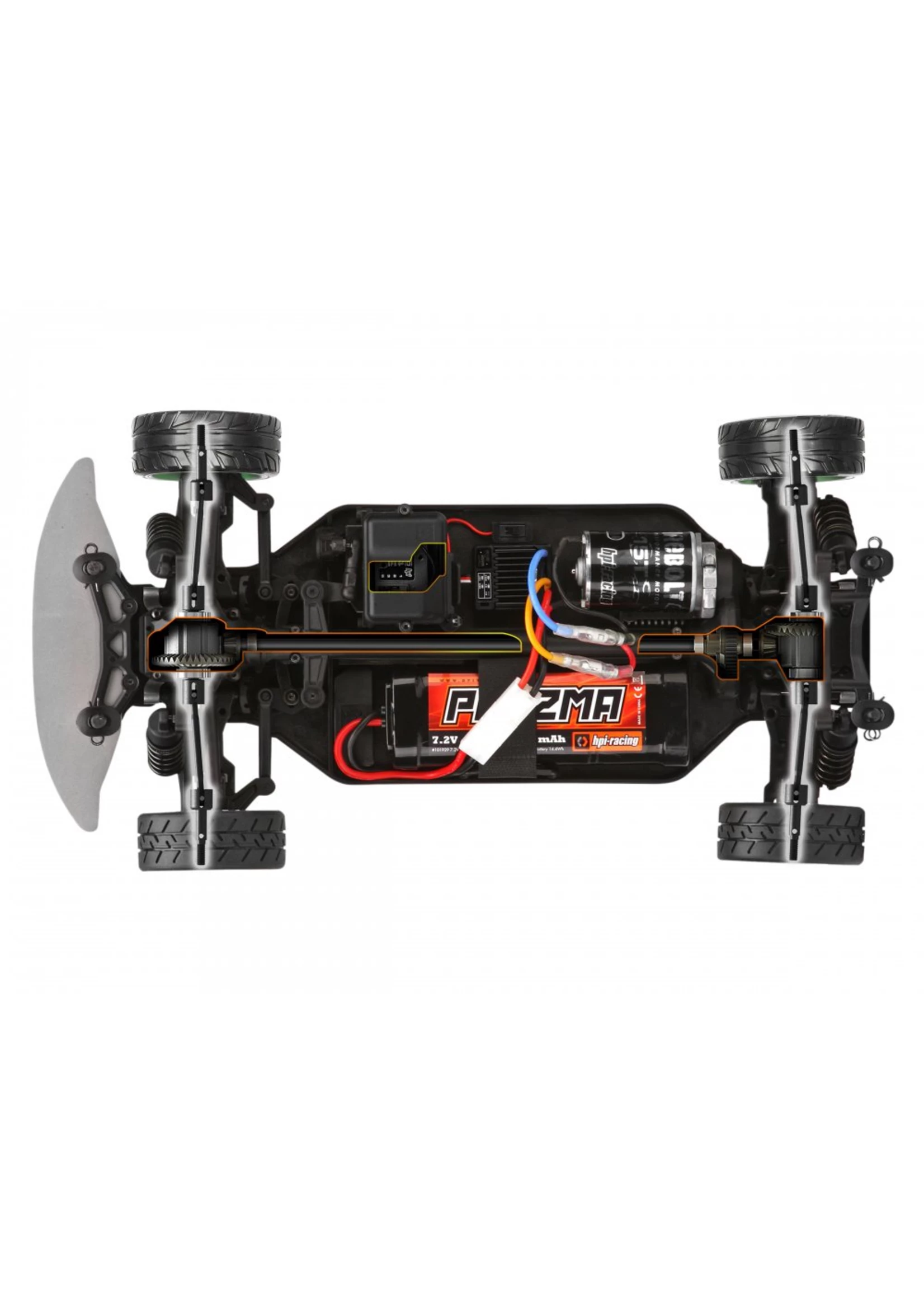 Under the hood, everything is as you would expect with the superb Sport 3 chassis: featuring full-time shaft drive 4WD, fully sealed FLUX-ready drivetrain, waterproof electronics, fully independent double wishbone suspension, and adjustable oil-filled shocks. This fully-featured, race-ready chassis rolls on replica Nitto racing tires ideally suited for drift action, wrapped around RTR Tech 7 wheels.