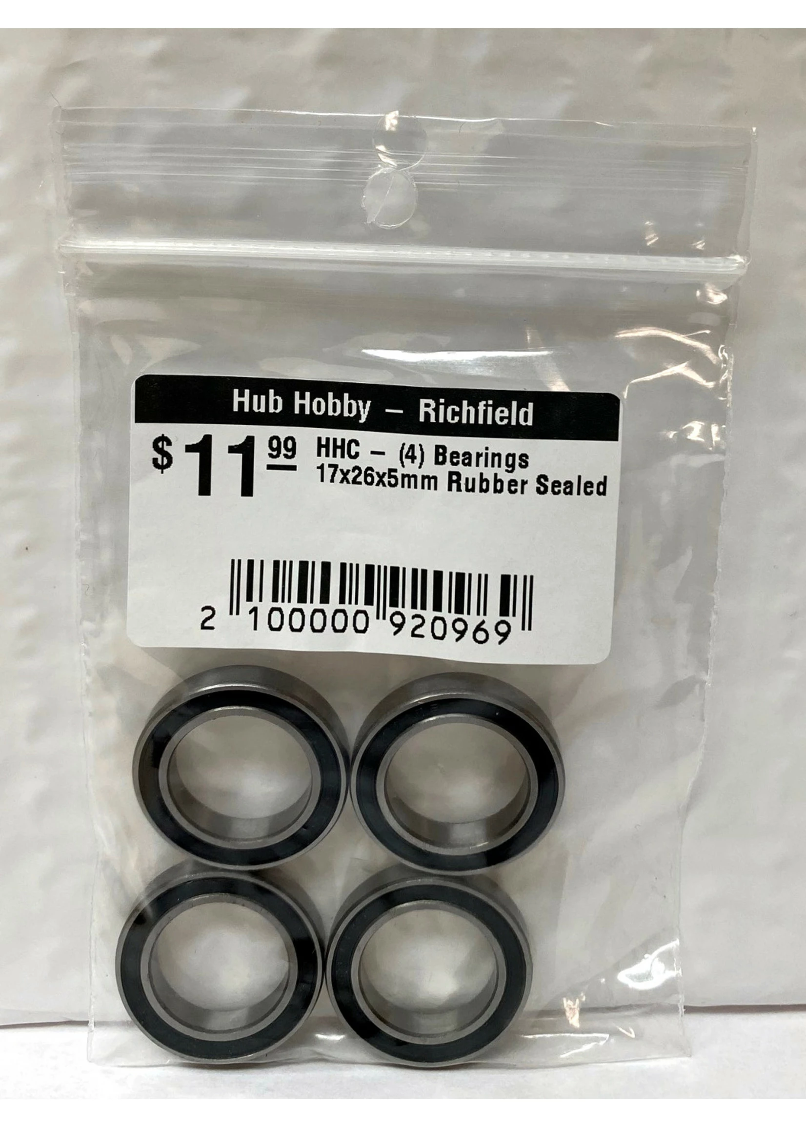 Hub Hobby Rubber Sealed Ball Bearings, 17x26x5mm, (4)