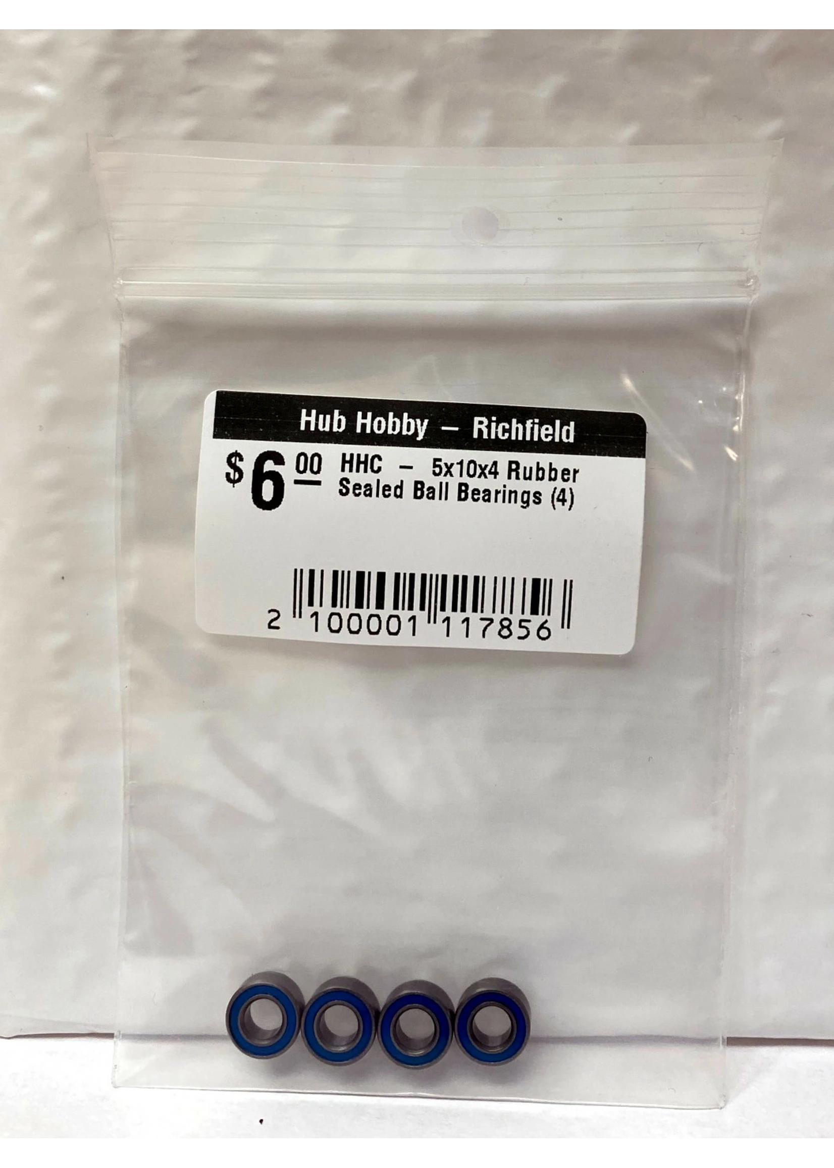Hub Hobby Rubber Sealed Ball Bearings, 5x10x4mm, (4)