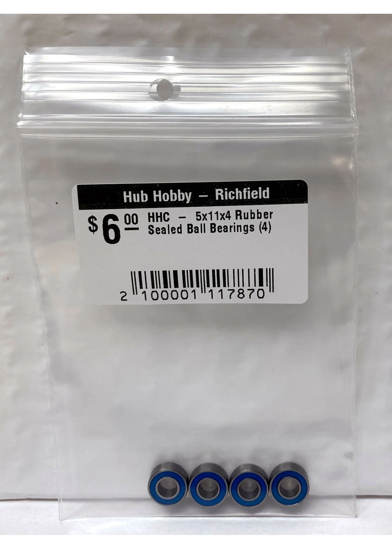 Hub Hobby Rubber Sealed Ball Bearings, 5x11x4mm, (4)