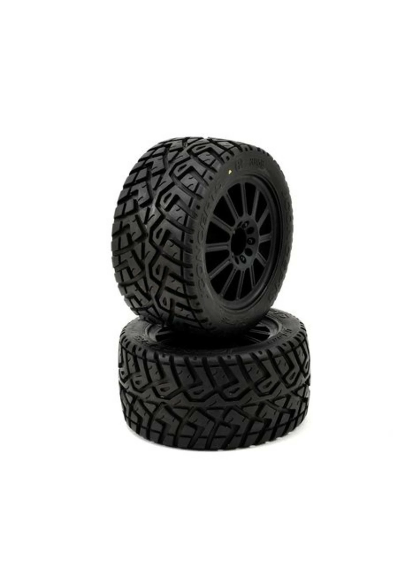 This is a pack of two JConcepts Pre-Mounted G-Locs 2.8″ Tires in yellow compound, pre-mounted on Rulux Electric Front Wheels. These pre-mounts can be used on the front and rear of the Traxxas Stampede 4×4, as well as the front of the electric 2WD Stampede, and 2WD Rustler trucks. Plus, they also fit on the Slash 4×4 when equipped with the JConcepts Scalpel body and conversion kit. The 2.8″ G-Locs provide elements that combine light-weight, performance and durability with the inclusion of Profiled closed cell inserts. The highly successful insert material made it’s fame on the 1/8th off-road racing circuit and now into the JConcepts 2.8″ line. Feel at ease while doing high-speed runs with the durability and performance of the closed cell material which provides durability and feel when others run short.