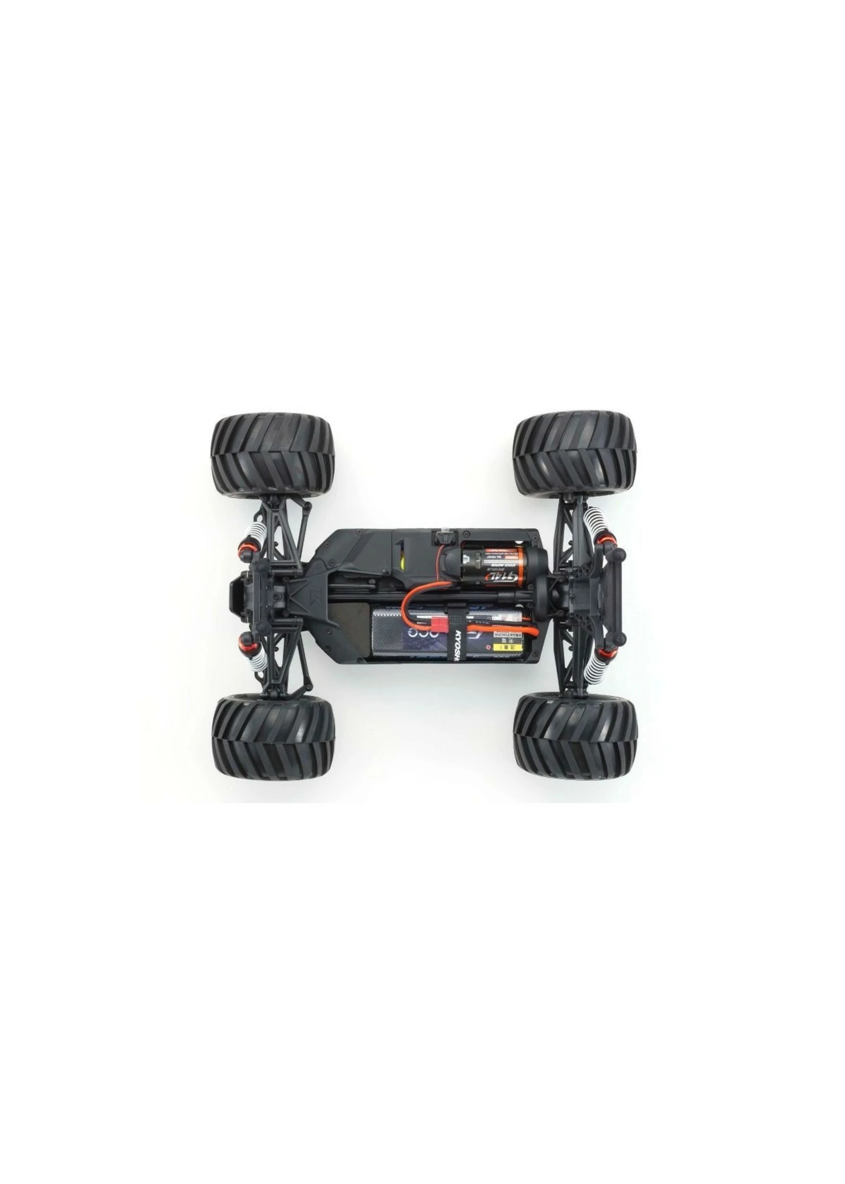 Designed in the image of an American full-size van, Kyosho’s fun MAD VAN model combines retro body styling with a light and sporty chassis for pure R/C enjoyment. The simple design of the FZ02L-BT chassis uses fewer parts for easy maintenance and delivers strength and rigidity through front & rear stiffeners with reinforced ribbing and optimized material formulation on critical parts. In addition, the near symmetrical design and optimal front-rear suspension balance works in combination with the power source to produce excellent control and maneuverability for this type of model. Slipper clutch, front and rear differentials, oil shocks and full ball bearing specifications provide performance efficiency to compliment its high durability and impact-resistance. Soft compound, wide large-diameter tires with inner sponges feature rounded shoulders to produce secure grip, not only off-road, but on sealed surfaces too, so this van can be enjoyed just about anywhere! As the MAD VAN is a fully pre-assembled Readyset, only 4 x AA batteries for the transmitter, battery for the chassis, and a battery charger are required for the fun to begin. Whether going off-road or on-road, the MAD VAN produces dynamic performance to be enjoyed with its own unique style.
