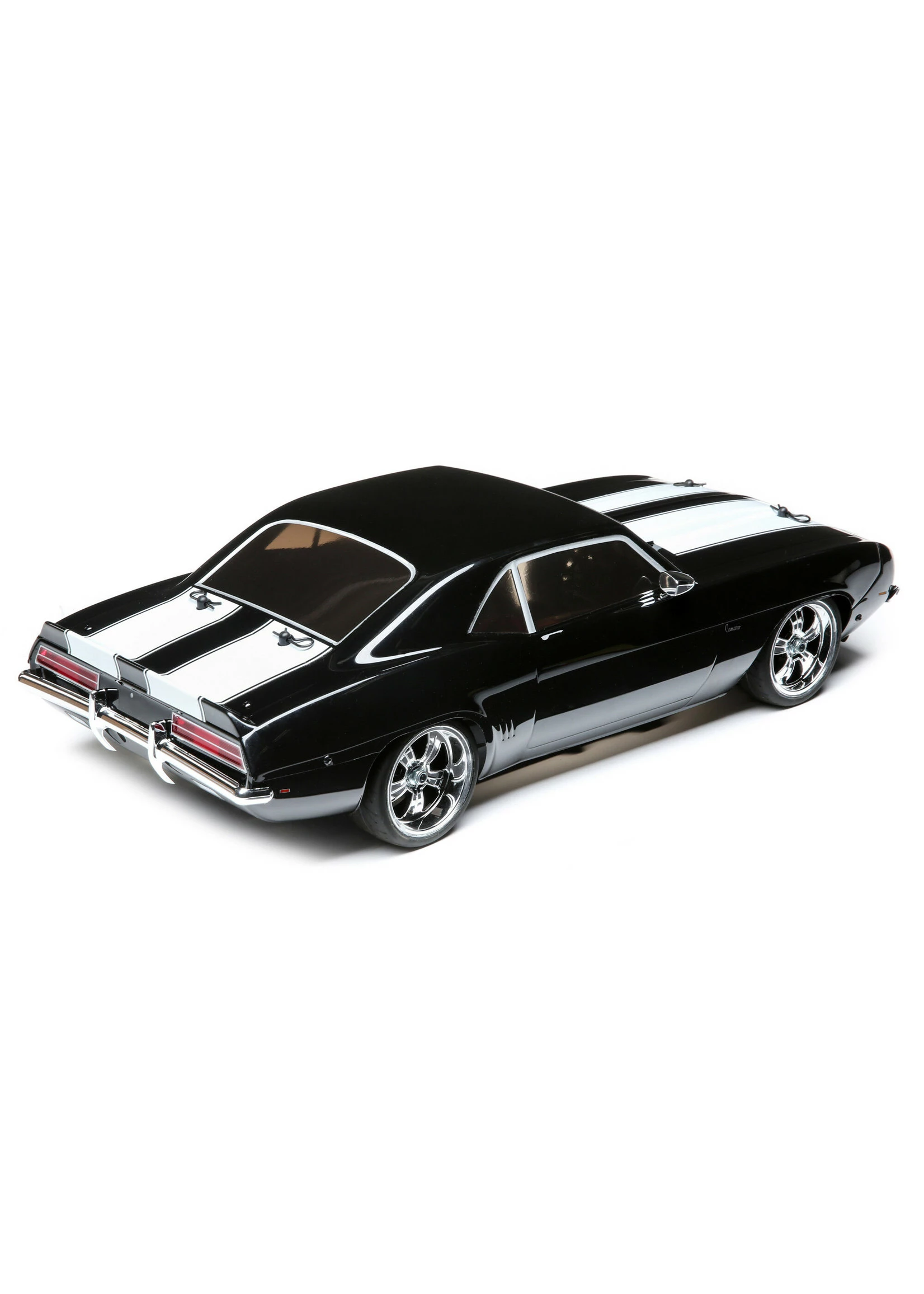 This striking reproduction of the ’69 Chevrolet Camaro comes with a detailed body including a molded grill with bucket lights, fog lights, and rear lights as well as side view mirrors perfectly capturing the look and feel of this quintessential American muscle car. The Losi® ‘69 Camaro is a faithful recreation designed for discriminating auto enthusiasts as well as beginners looking to show off. The elegant aggression is present in every line and curve of the officially licensed body. Lurking beneath the muscle car exterior is the power and poise of a V100-S chassis. The V100-S chassis provides a balanced, neutral handling car with an emphasis on the locked rear differential. Its potent Dynamite® power system and shaft-driven 4WD delivers excellent traction on paved surfaces and superb drift control when sliding across loose surfaces earning you serious street cred right out of the box. Roll down the street and watch the heads turn.