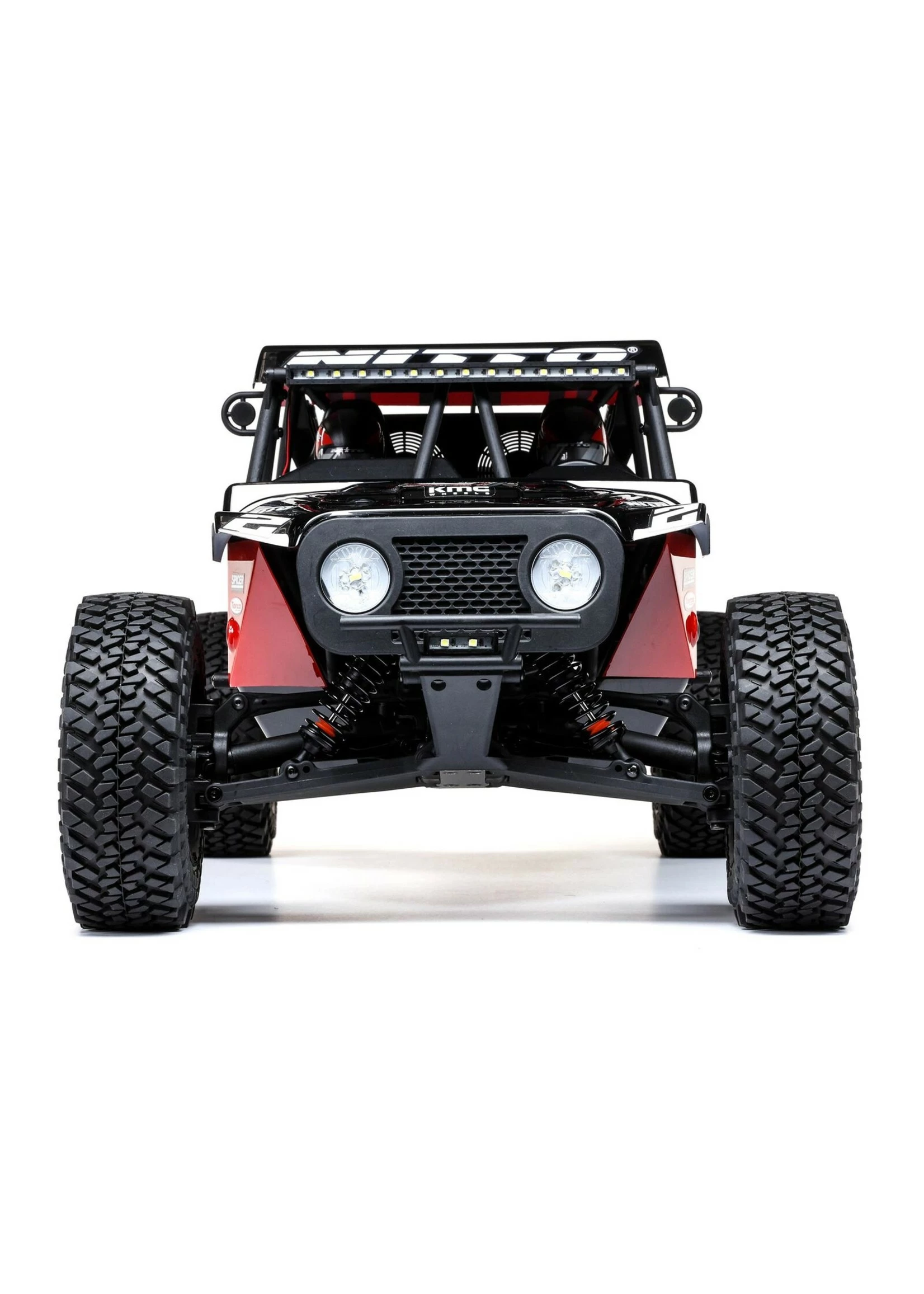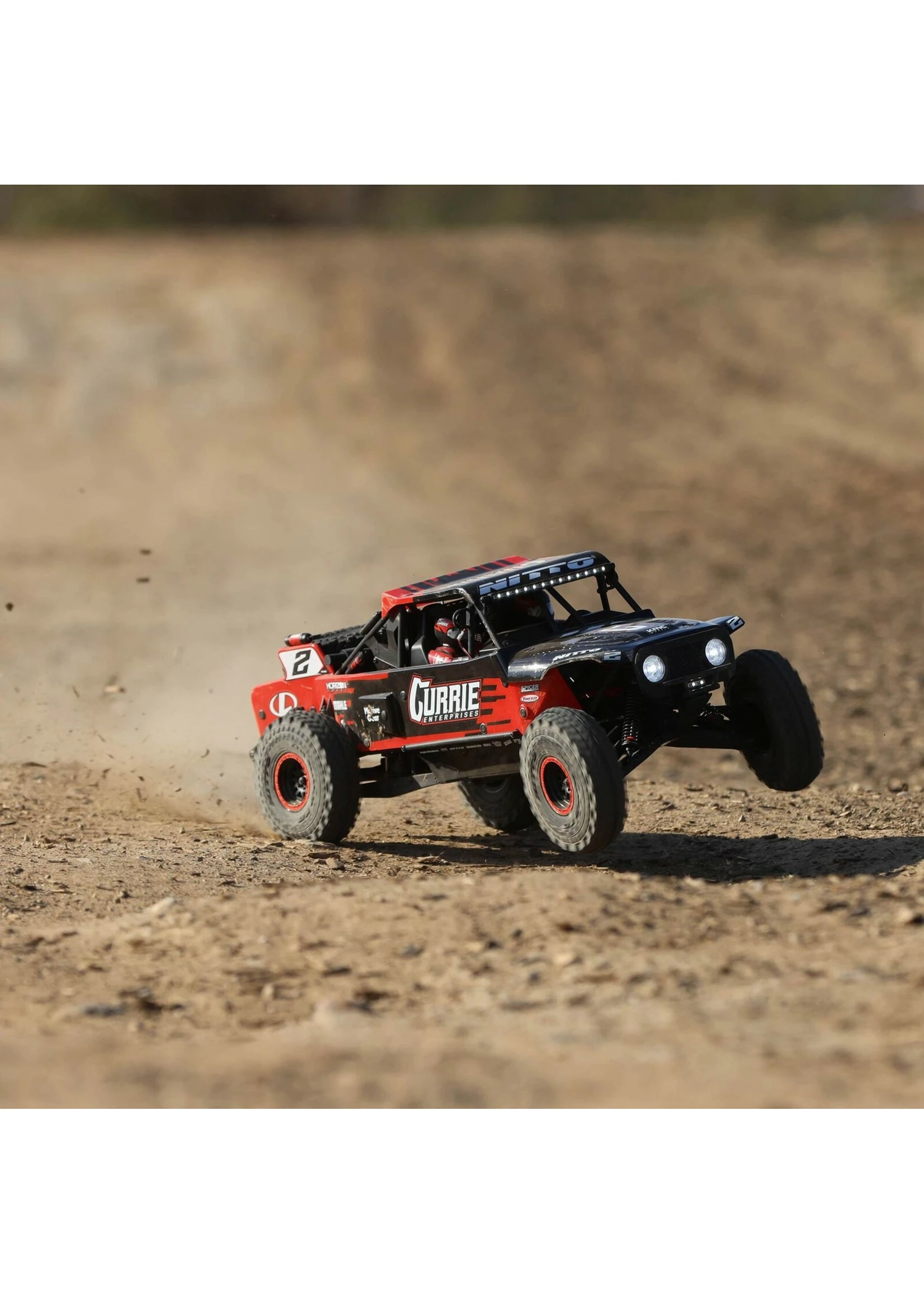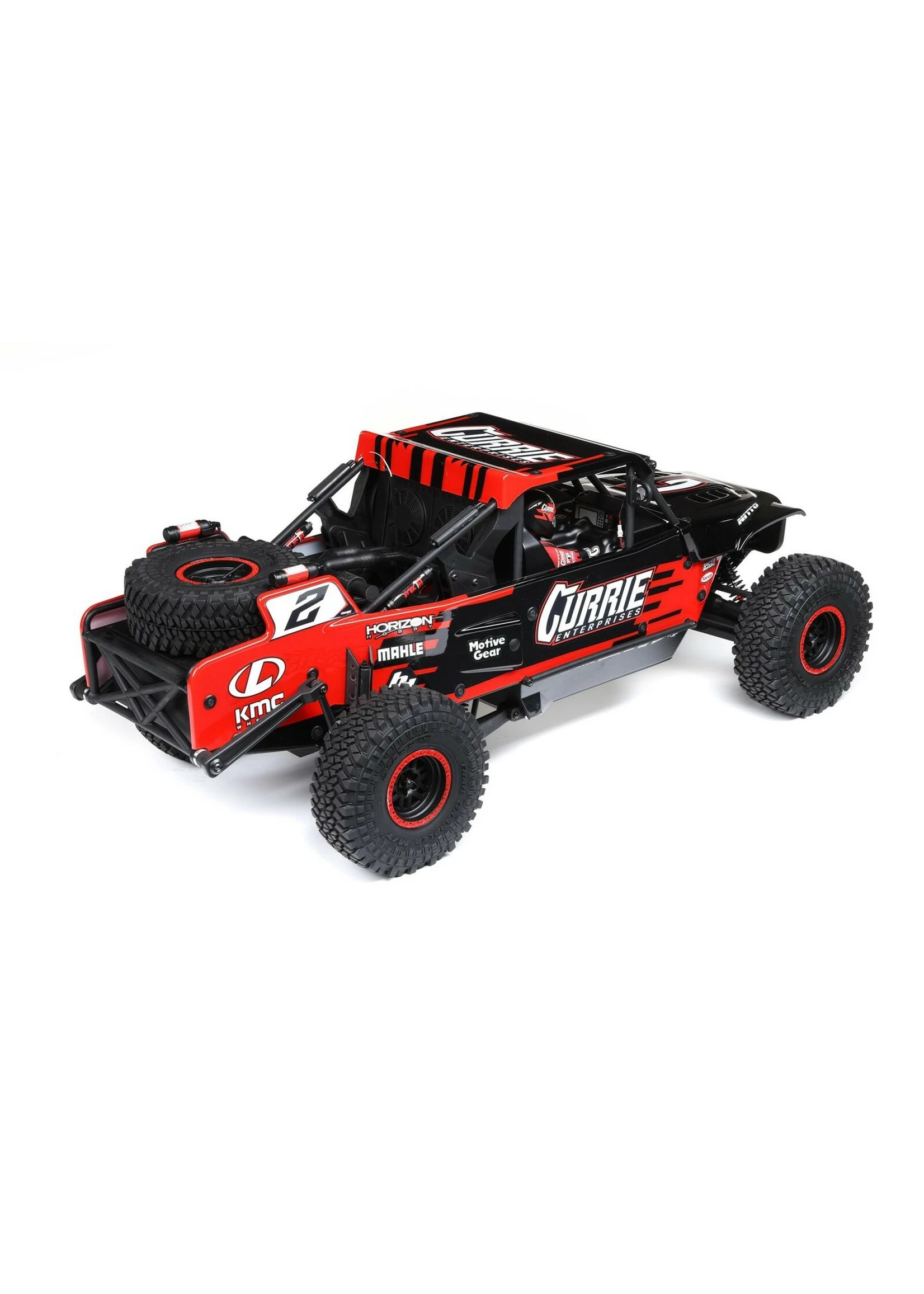 The Losi® Hammer Rey® is a SMART, Ready-to-Run Rock Racer with AVC®. It is officially licensed and based off Casey Currie’s U4 Racer. It’s powered with a Spektrum™ 3150Kv brushless motor and managed by the Smart 130A ESC, 6-channel DSMR AVC/telemetry receiver, and the new DX3 transmitter that provides Spektrum Smart feedback including live battery voltage. Along with the officially licensed design, the Hammer Rey includes KMC wheels, Nitto tires, and additional details such as new shock reservoirs, fire extinguishers, and new light bars. It comes equipped with a solid rear axle, independent front suspension, and oil-filled shocks, so you can tear across all types of rocky off-road terrain. And you’ll do so with the full-throttle freedom that only AVC® technology can provide. The Hammer Rey is ideal for victory-minded off-road enthusiasts looking for the top-of-the-line RC experience with the inclusion of AVC and the three-position limiting switch. With the Hammer Rey, Losi continues to push the limits when it comes to scale details, performance and officially licensed products.