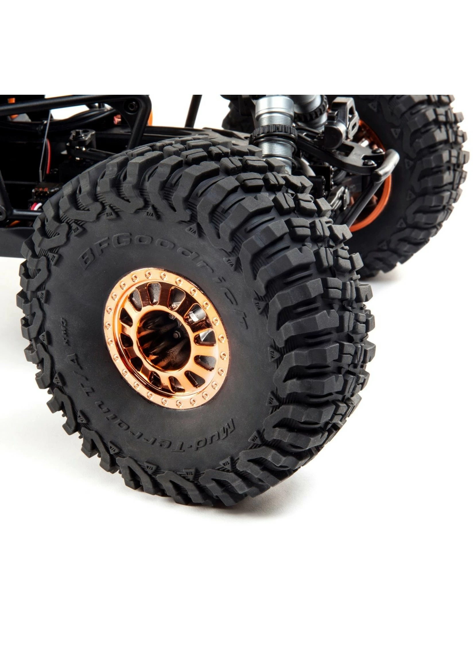 The included scale licensed Raceline 2.2 racing wheels and BFGoodrich KM3 tires feature an aggressive tread pattern that handles any terrain and good looks while out on any course.
