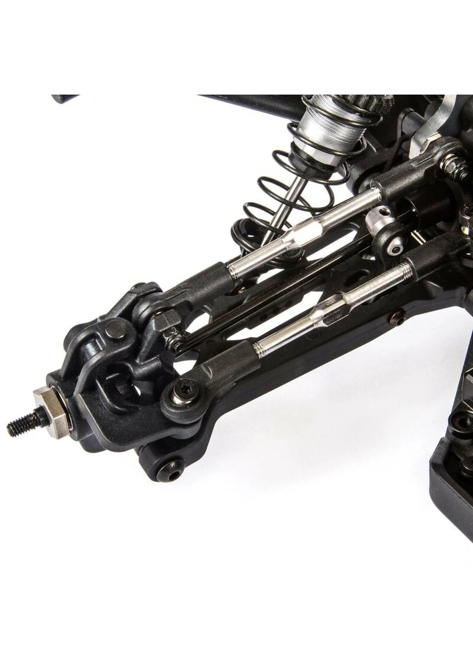 The TEN platform is known the world over as the epitome of toughness. Taking on all challenges, these trucks and buggies dominated off-road excitement. The Losi® TENACITY® TT Pro 1/10-scale 4WD establishes that off-road superiority. The TENACITY TT Pro includes a full metric hardware package and aluminum features the competition sells as option parts. This short course truck features all the technological advances drivers demand including the Spektrum™ Smart 130A Brushless ESC and Spektrum Firma® 4-Pole 3150KV 550 Motor allowing you to hit 50+ MPH with a 3 cell LiPo battery. Of course, the ESC is waterproof, completely programmable and comes pre-wired with a high-current IC5™ connector. Drivers stay in control with a DX2E Active™ transmitter, a Spektrum AVC® receiver with steering priority, and an officially licensed Brenthel race inspired scale trophy truck body along with officially licensed Method Wheels with Falken Wildpeak MT Tires that can drive through any condition. You get all this and more from the brand that represents the pinnacle of performance.