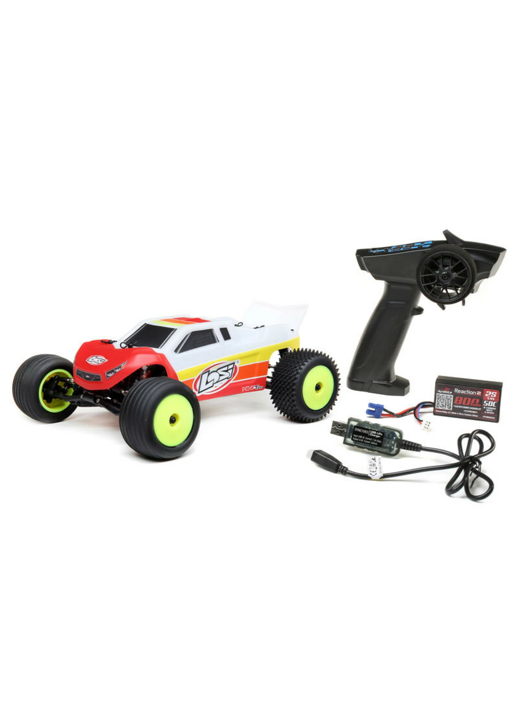 The Mini-T 2.0 Brushless comes fully assembled and ready to rock. Just install the included AAA batteries in the transmitter, charge the included LiPo battery with the included charger.
