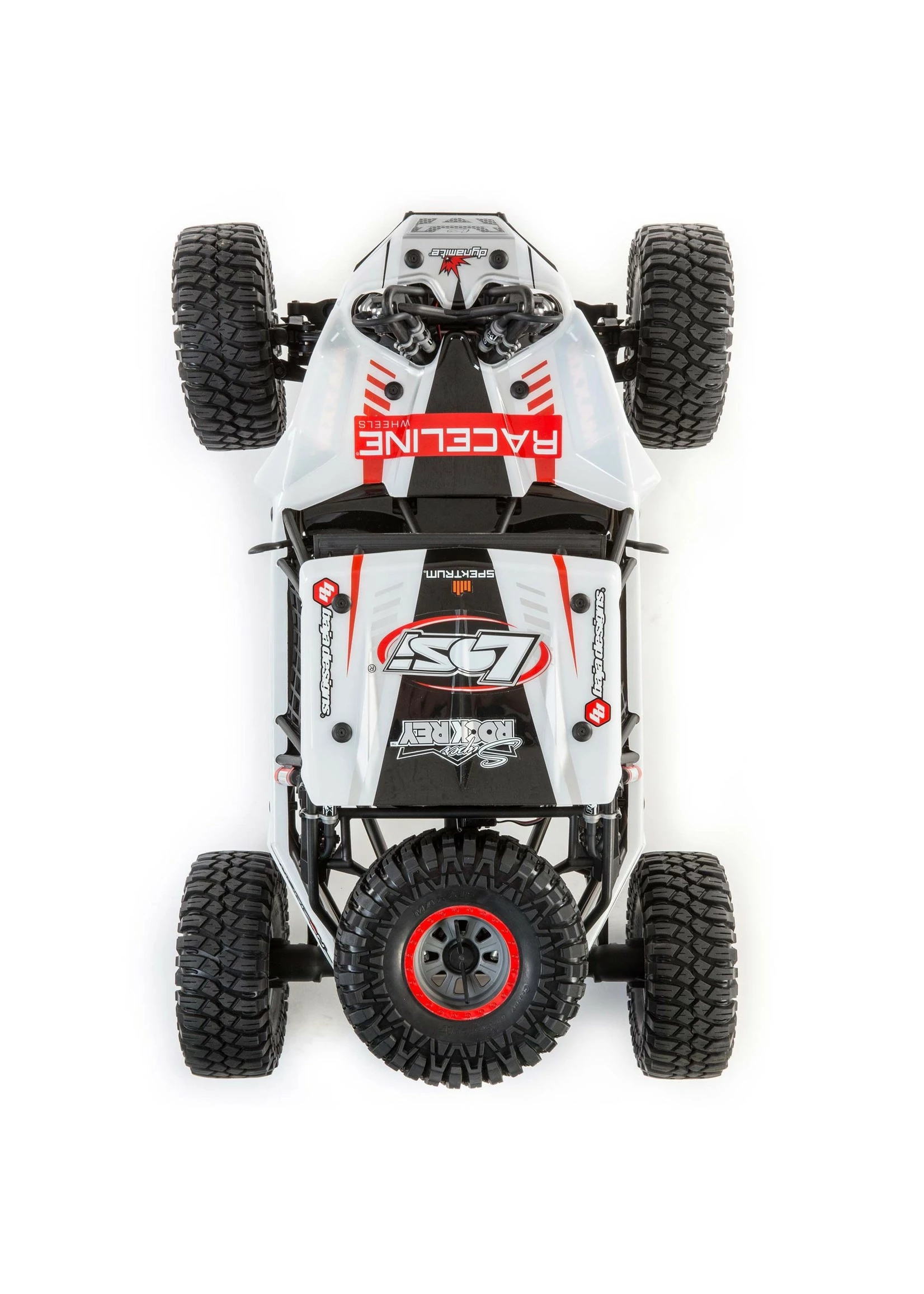 Licensed Raceline Wheels and Baja Designs trim schemes complete the scale details of the Super Rock Rey. These trim schemes will have racers doing double takes as they take on all comers.