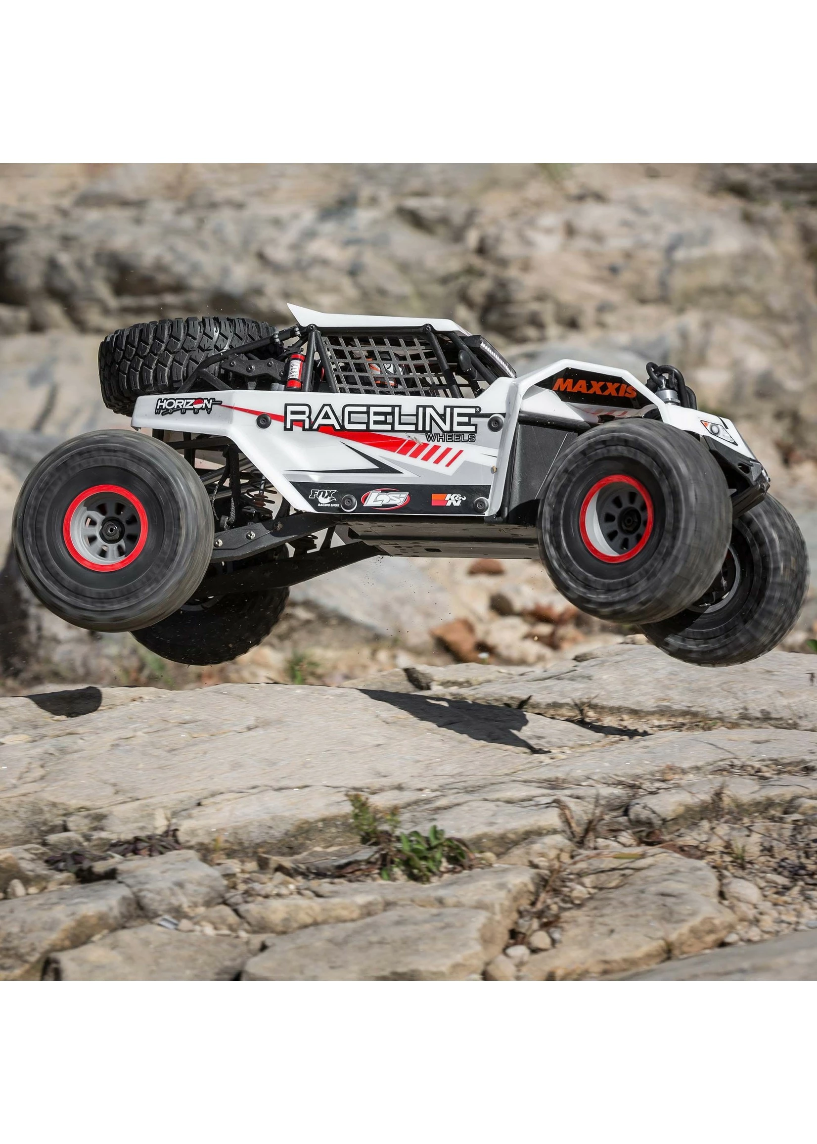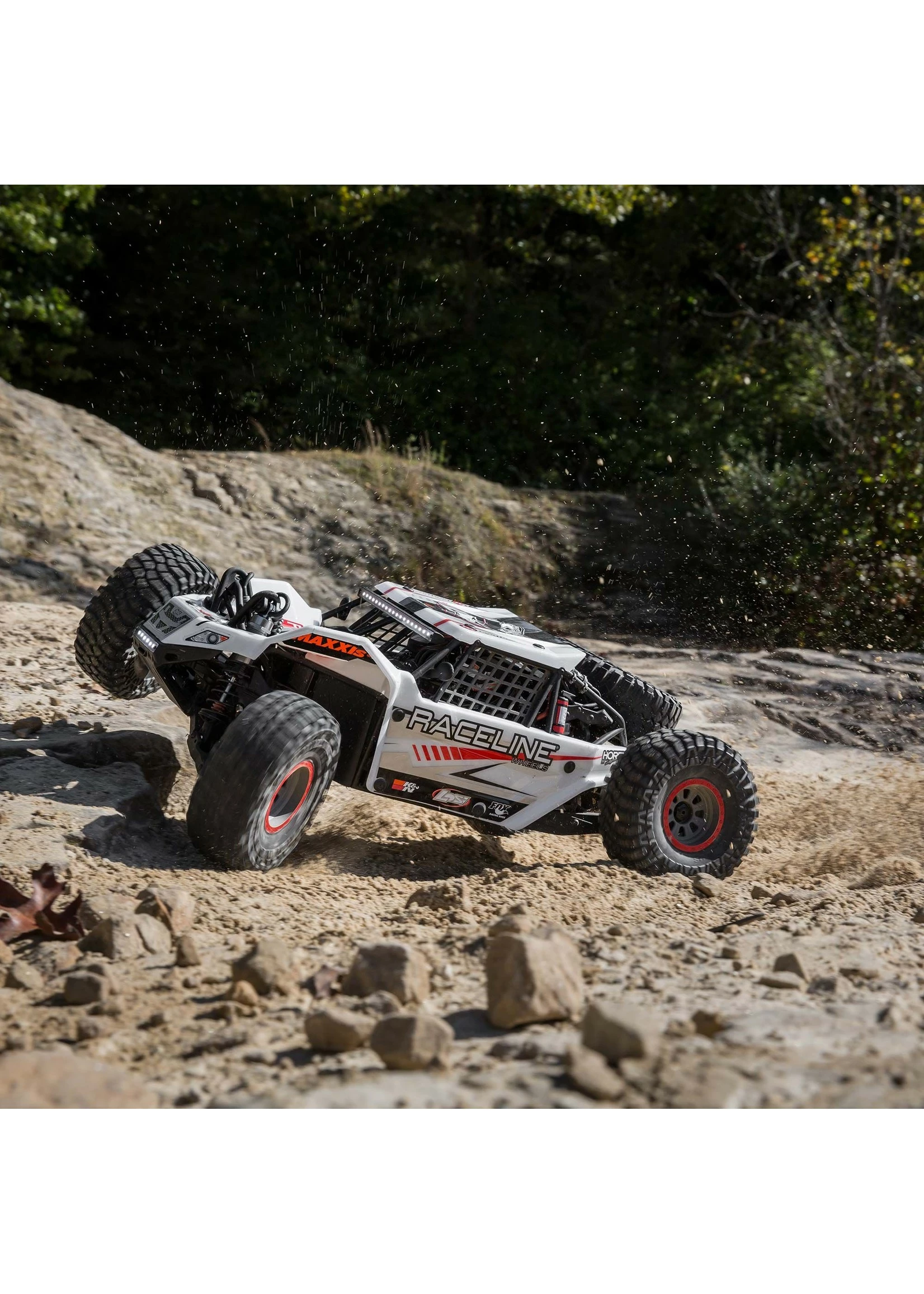 The Super Rock Rey’s rear suspension allows it to soak up massive whoops and bumps with the same realistic handling and movement of a full-scale desert truck. You get better control and a more locked-in feel regardless of the terrain.