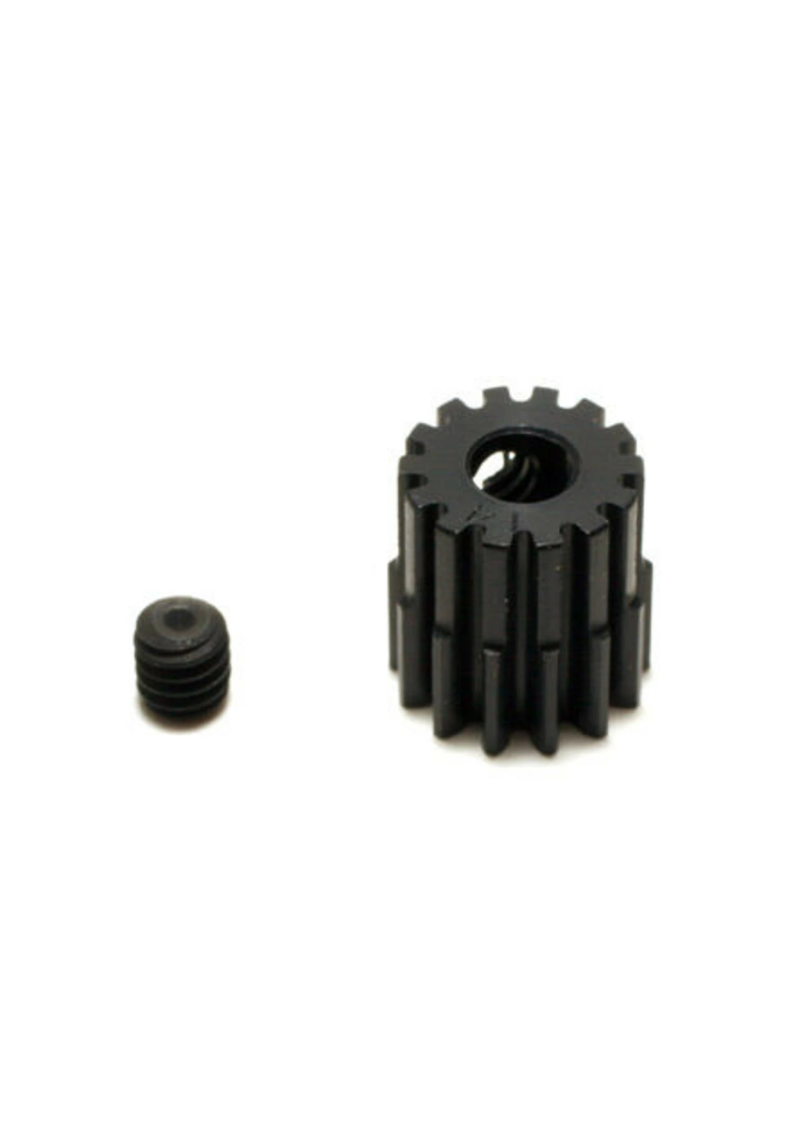The “Pro” Pinions are precision machined from aircraft aluminum, lightened and then they’re coated twice with a super hard, black anodize. Recommended for onroad, but they can be run off road. Pinions are stamped with tooth number. 1/8 inch bore. One 5-40 set screw included.