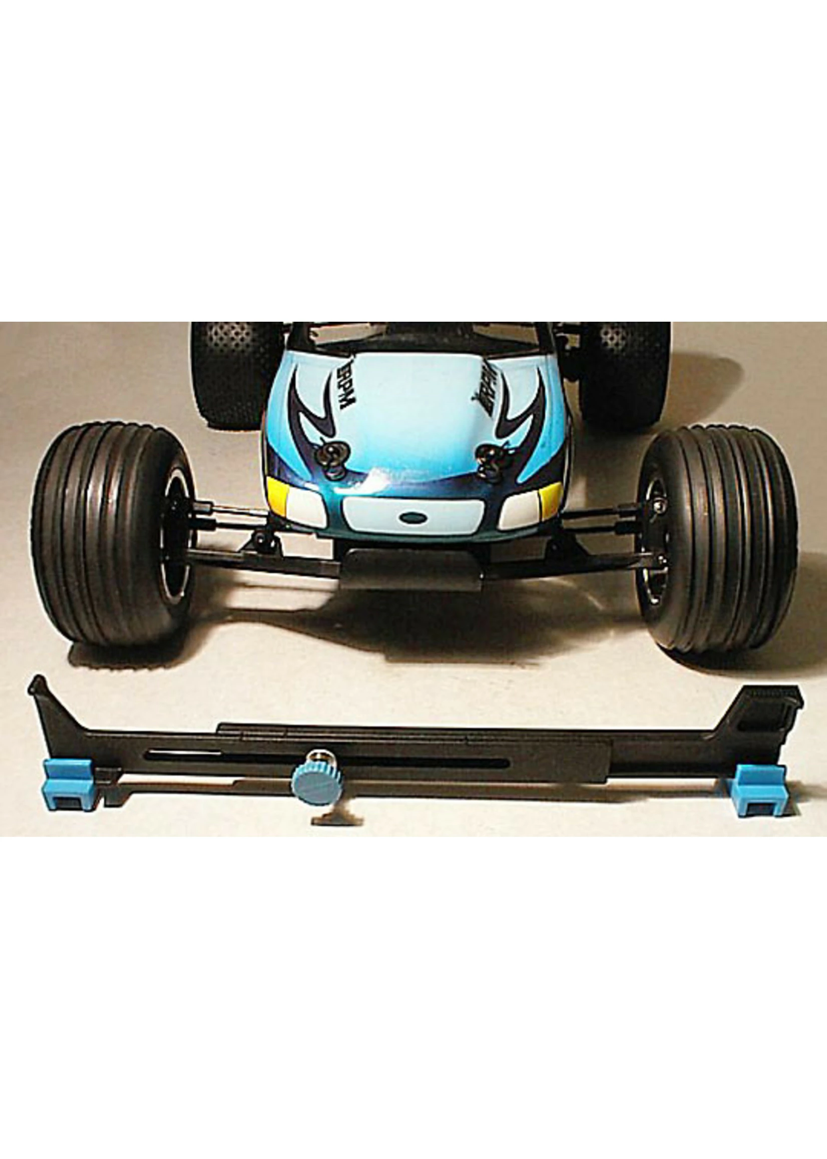 Our Toe-In gauge allows you to do track-side checks of the toe-in without removing the wheels! Our gauge checks toe through the simple method of comparing the distance between the wheels at the rear of the tire to the distance between the wheels at the front of the tire! Our gauge is accurate to within one half of a degree per side and closer! Also can be used to check legal width of off-road buggies and trucks. This gauge includes a second adjustment hole to check narrower vehicles such as sedans as well!