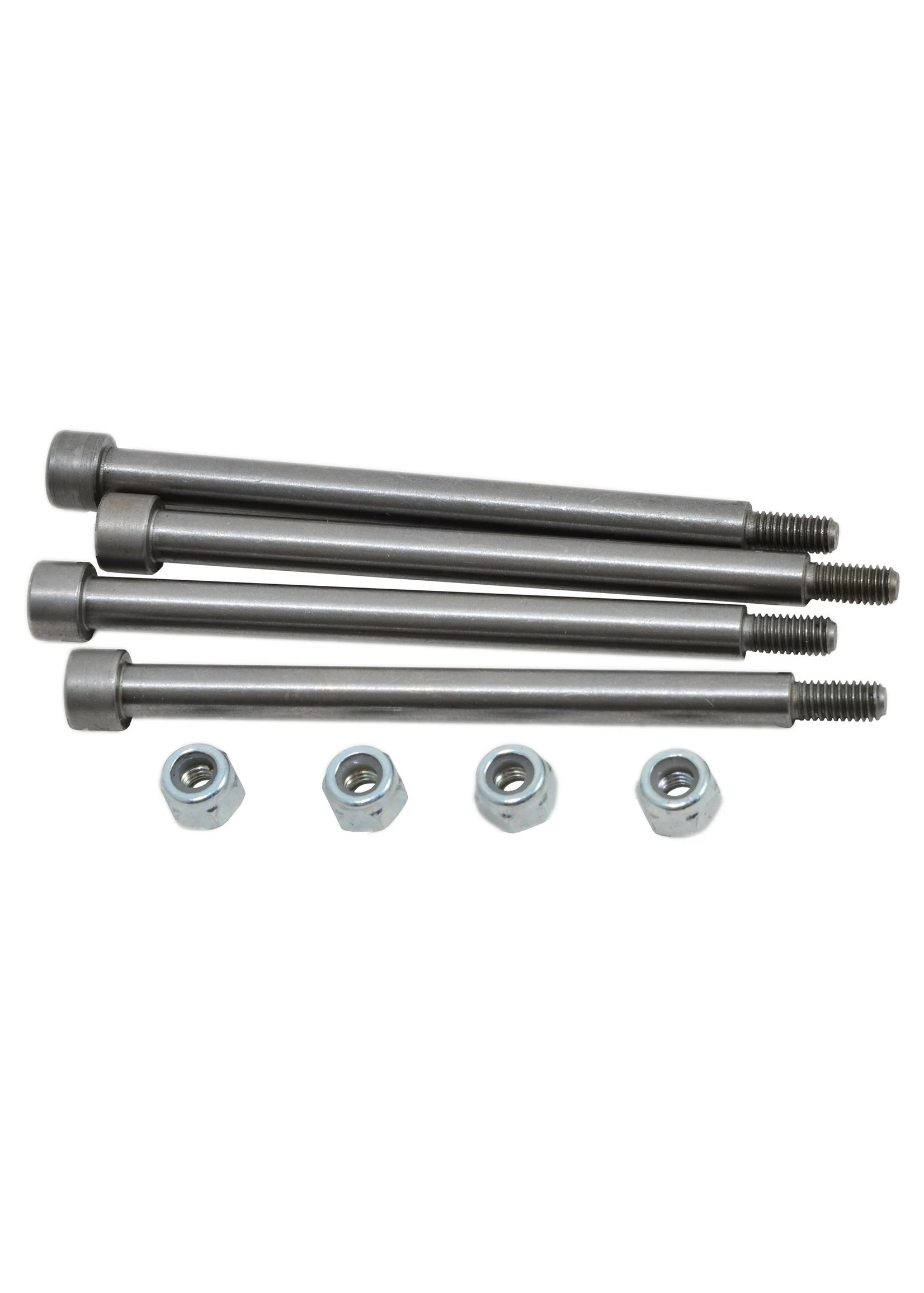 Tech Notes: RPM Threaded Hinge Pins are 4mm x 56mm and work in the outer, lower A-arm hinge pin location only. Each kit comes with 4 – threaded hinge pins and 4 – M3 locknuts. Our hinge pins can be used as a replacement for CEN GS025 hinge pins as well but RPM versions use a 3mm locknut instead of a 4mm version. When used with the X-Maxx (using stock or RPM A-arms), some minor modification of the A-arms is required for the hinge pins to fit (see instructions for more information).