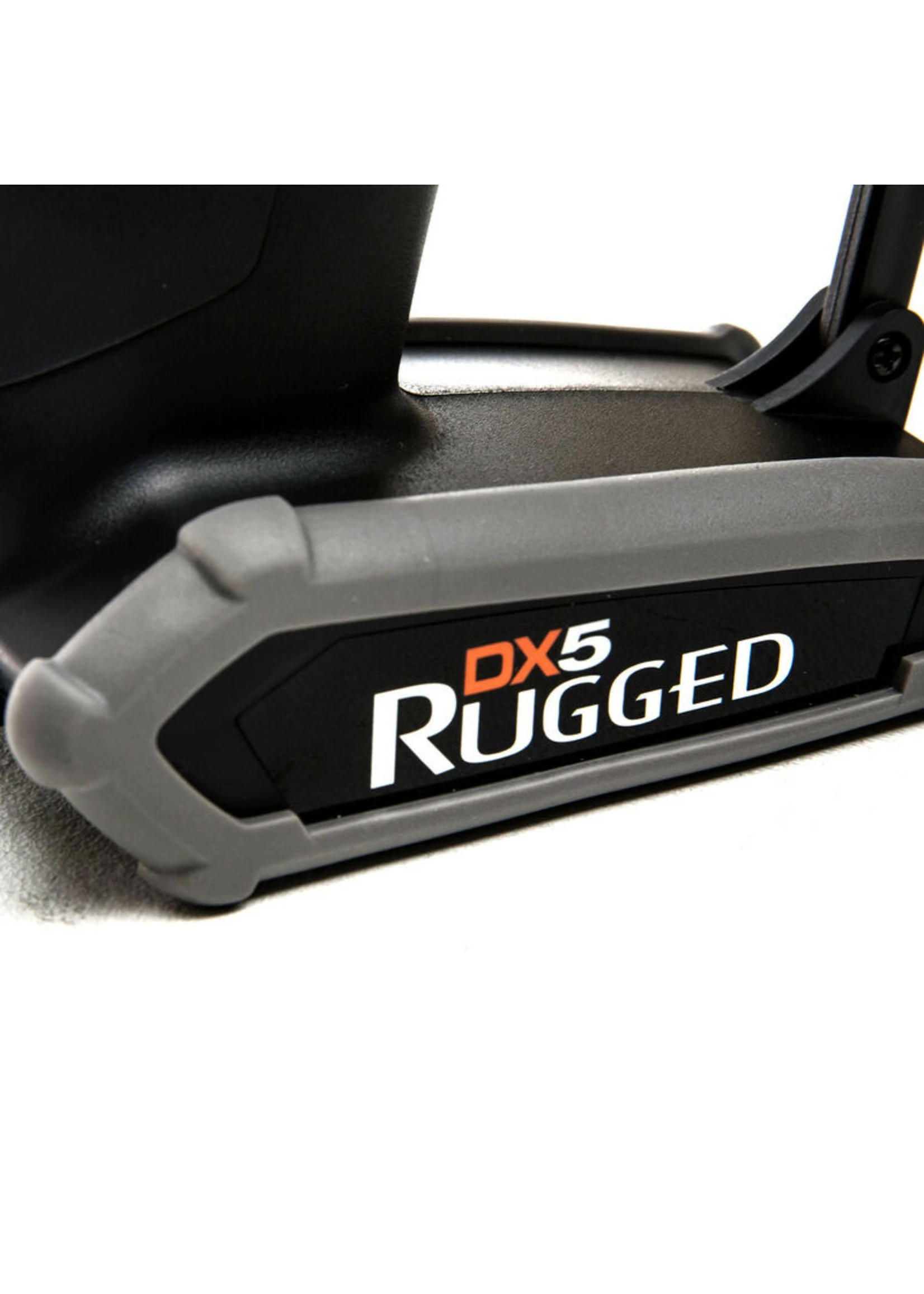 When it was first introduced, the Spektrum™ DX5 Rugged™ 5-channel surface transmitter gave new meaning to durability — surviving the harshest conditions and abuse that any basher or crawler could put it through. This updated version adds the very latest Spektrum™ advances to the DX5 Rugged™ design to provide the ultimate experience in worry-free surface control.