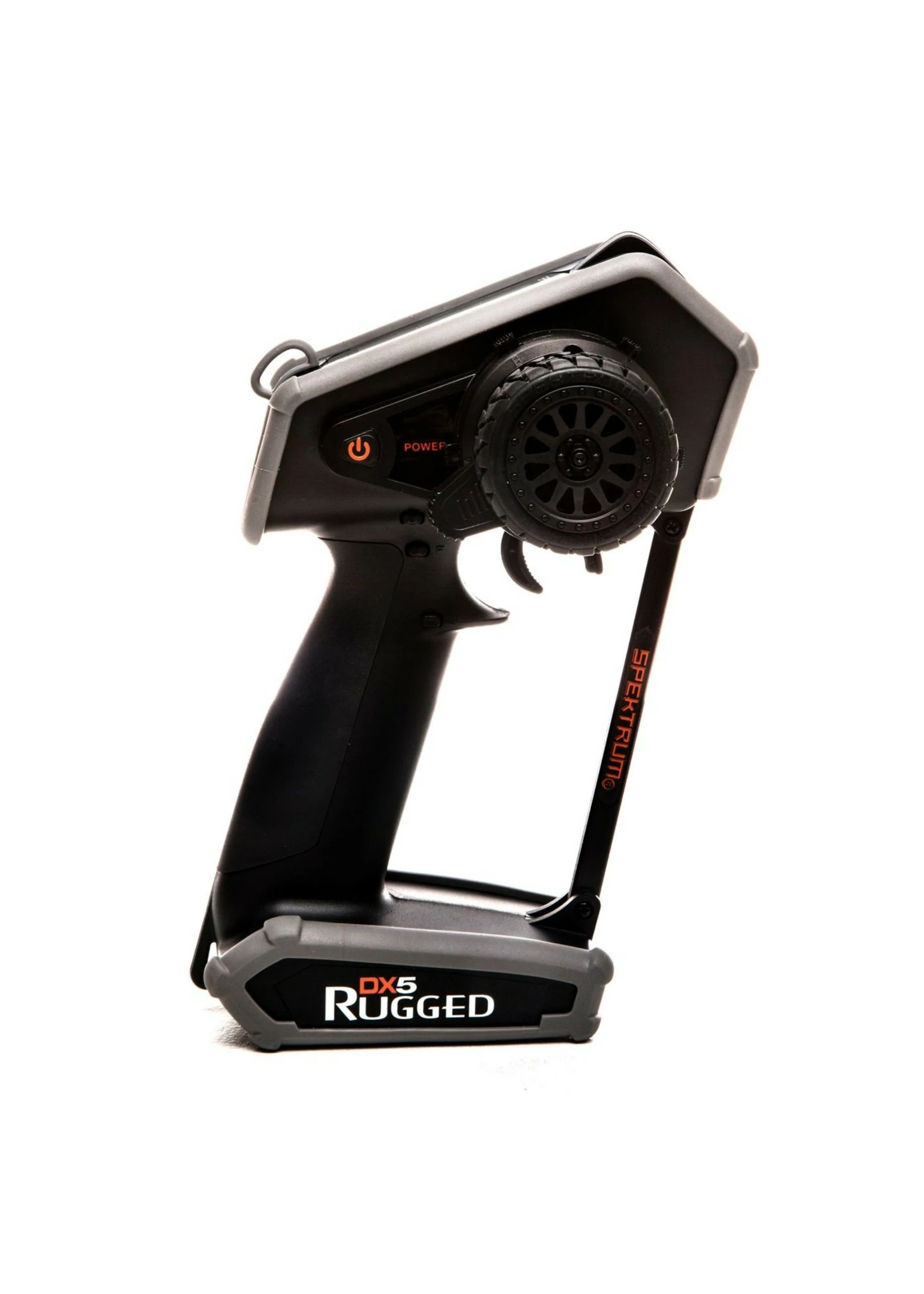The Spektrum DX5 Rugged 5-channel surface system redefines radio control with unmatched innovation in durability that no off-roader, basher or boater will want to be without. The result is precision control, convenience, and “rugged” versatility.