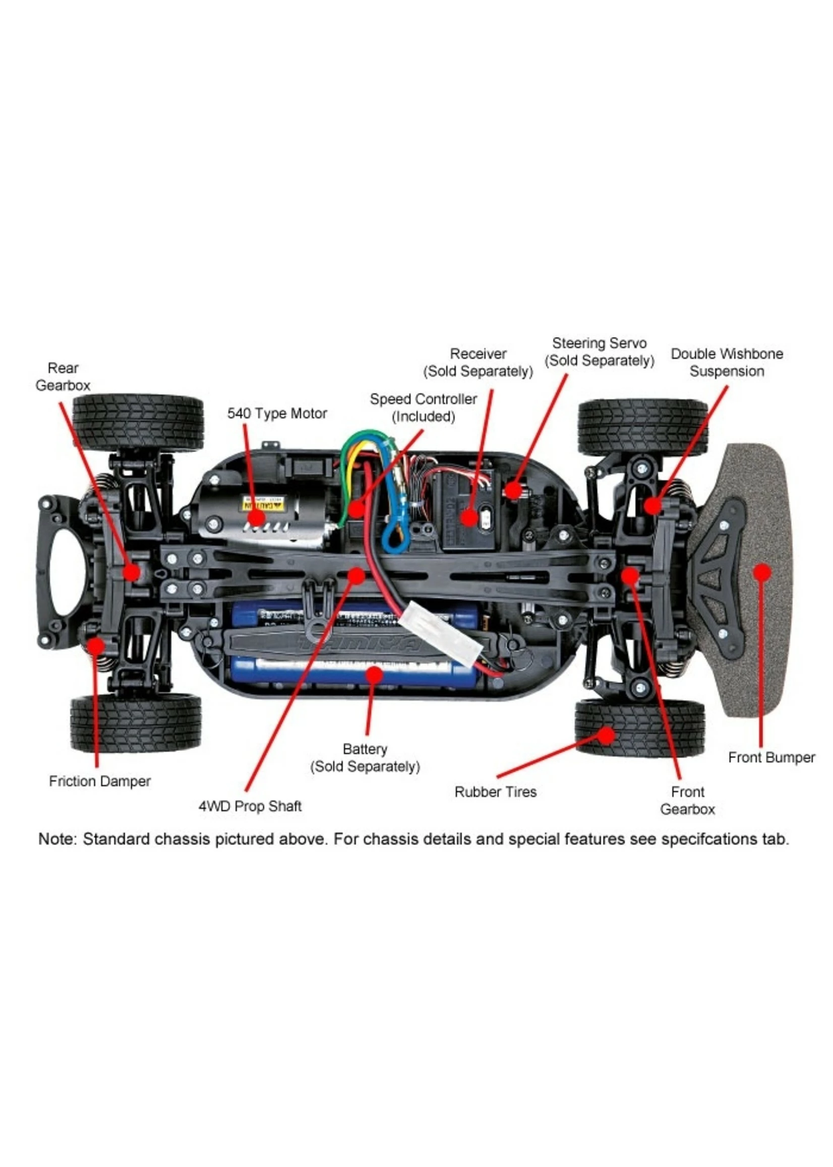 - Motor: 540 motor with pre-attached leads and blue aluminum heat sink