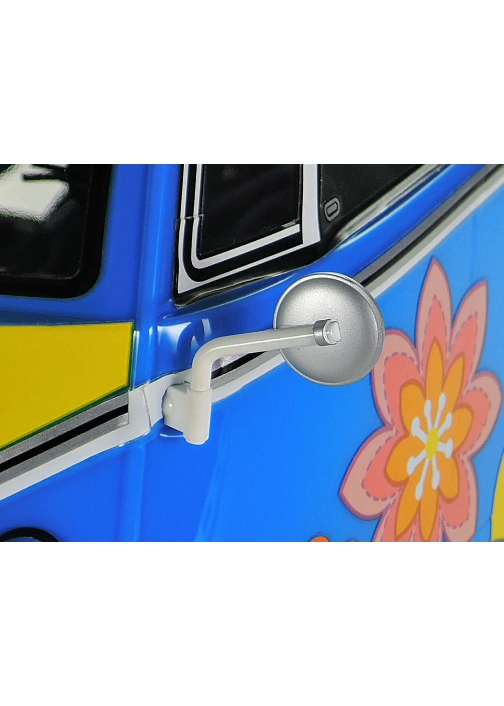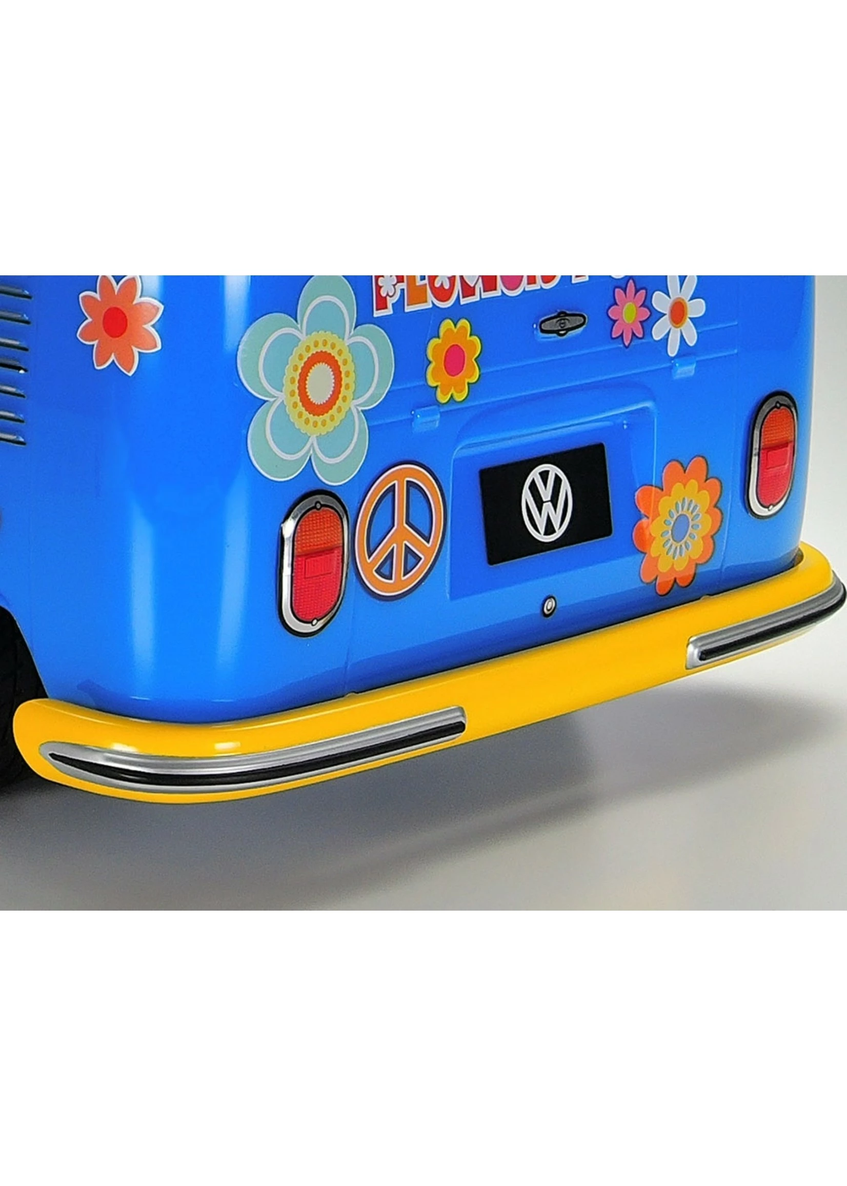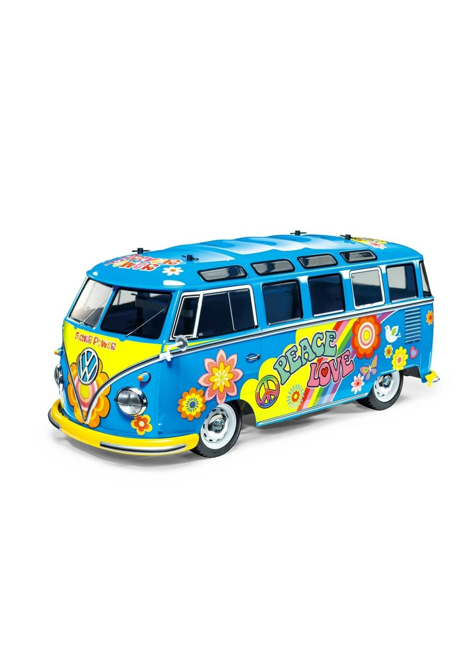 This TAMIYA R/C model assembly kit depicts the 1st-generation (T1) variant of the Volkswagen Type 2 van, which was introduced in 1950 and also known as the Volkswagen Bus to many of its legions of fans. For a limited time only, you can get your hands on this Peace and Love decorated version body that turns it into a veritable Hippy wagon! The R/C assembly kit is based upon the proven 2WD M-05 chassis.