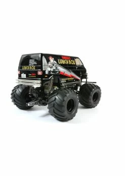 The popular Lunchbox model from Tamiya’s catalog makes a comeback in stylish black. This R/C assembly kit features the trademark boxy minivan body with metal-plated fenders, front grille and dampers, and includes a sticker set to add the finishing touches. All this is raised up over monster truck wheels cased in 115mm tires for a cool number that you can take for a spin any time, anywhere.