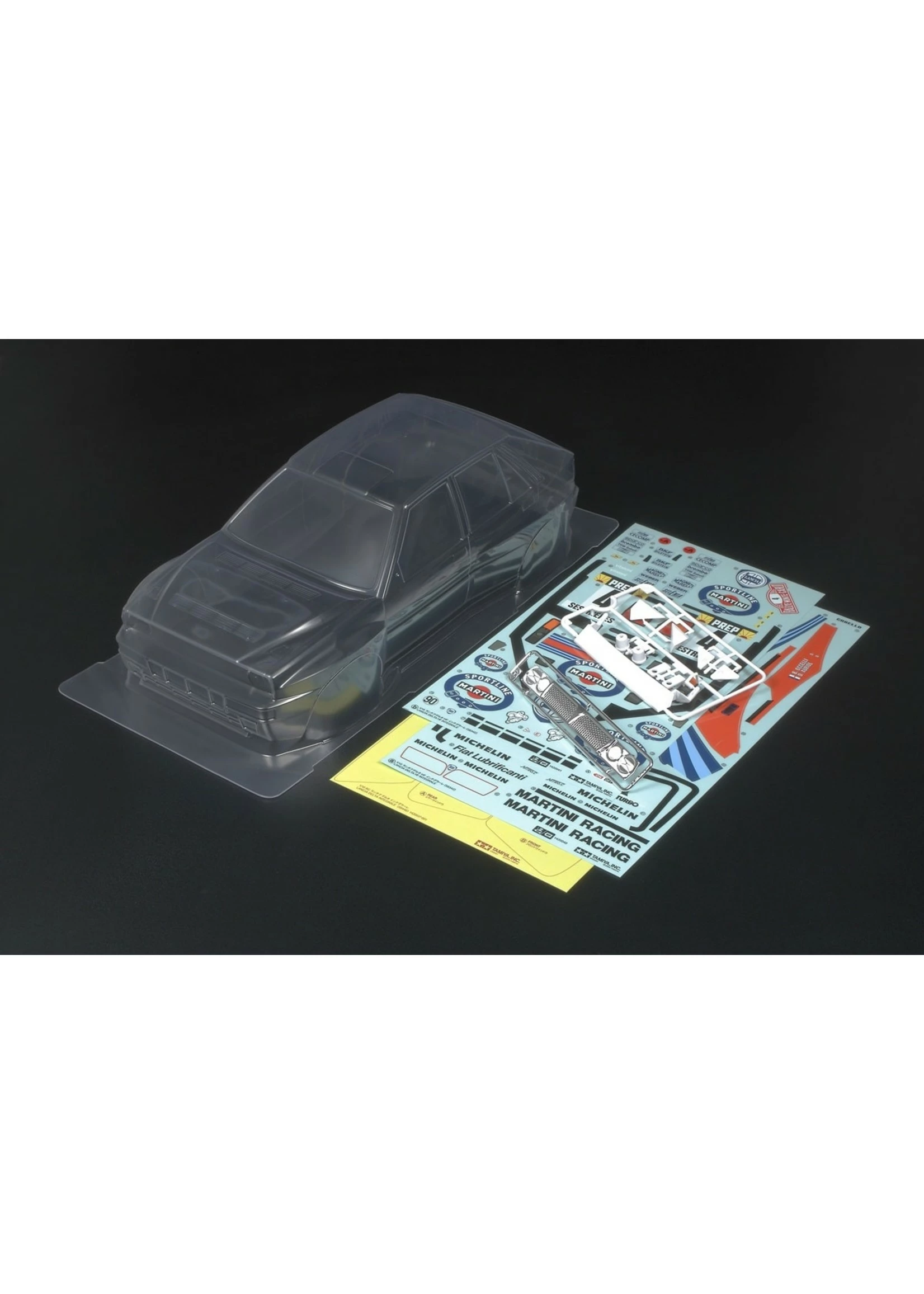 Durable clear polycarbonate body captures the distinctive shape of the Lancia Delta Integrale.