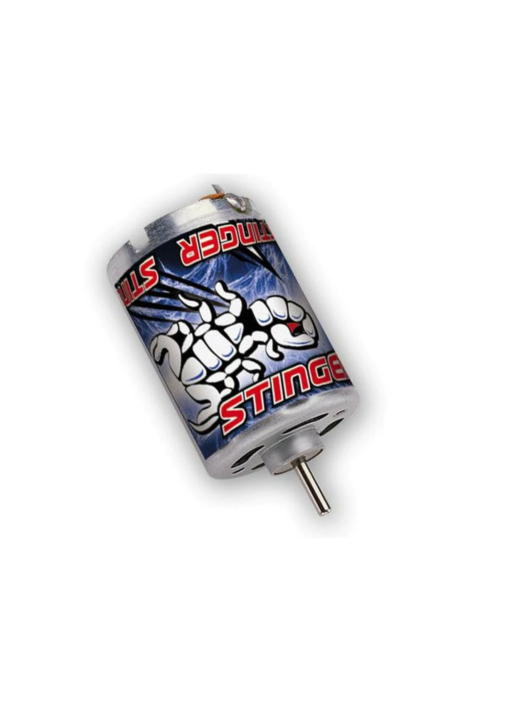 The Stinger motor is a mild modified motor that gives you a lot of speed and still gives you around 6-10 minutes of run time, depending on how you have your car set-up and what kind of batteries you are using.