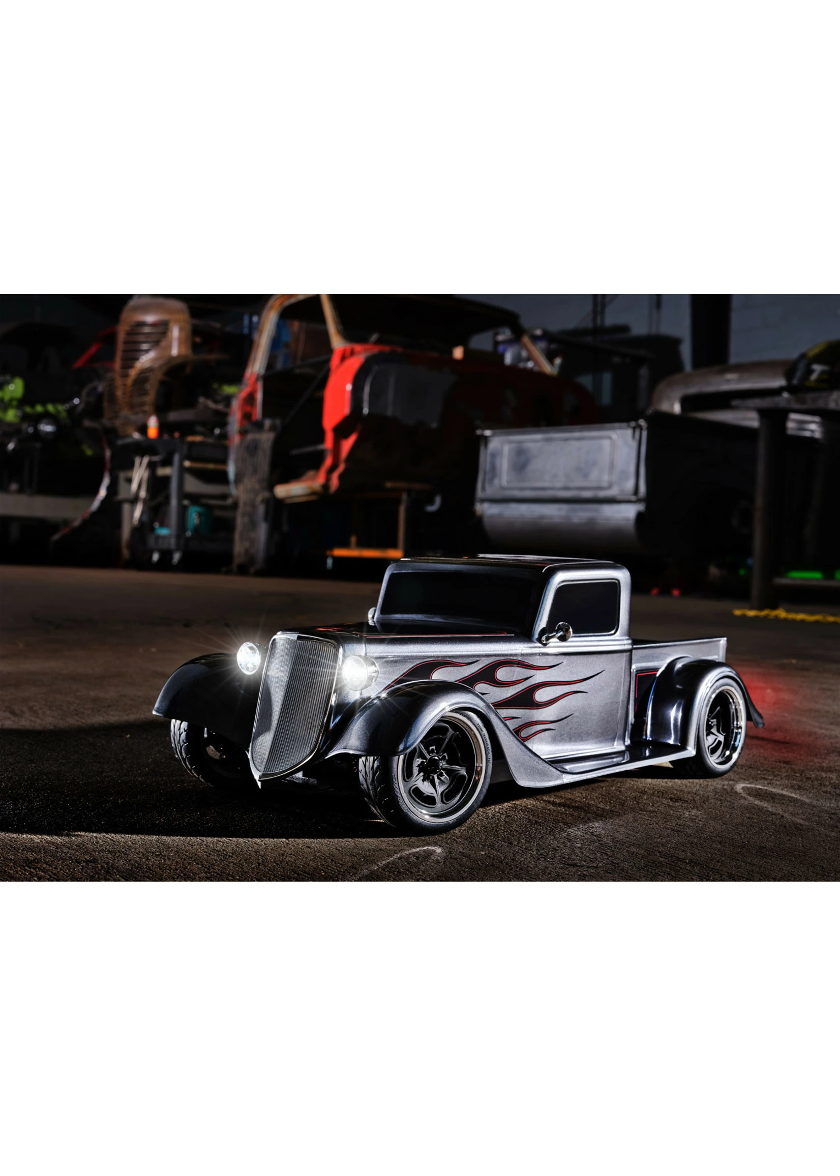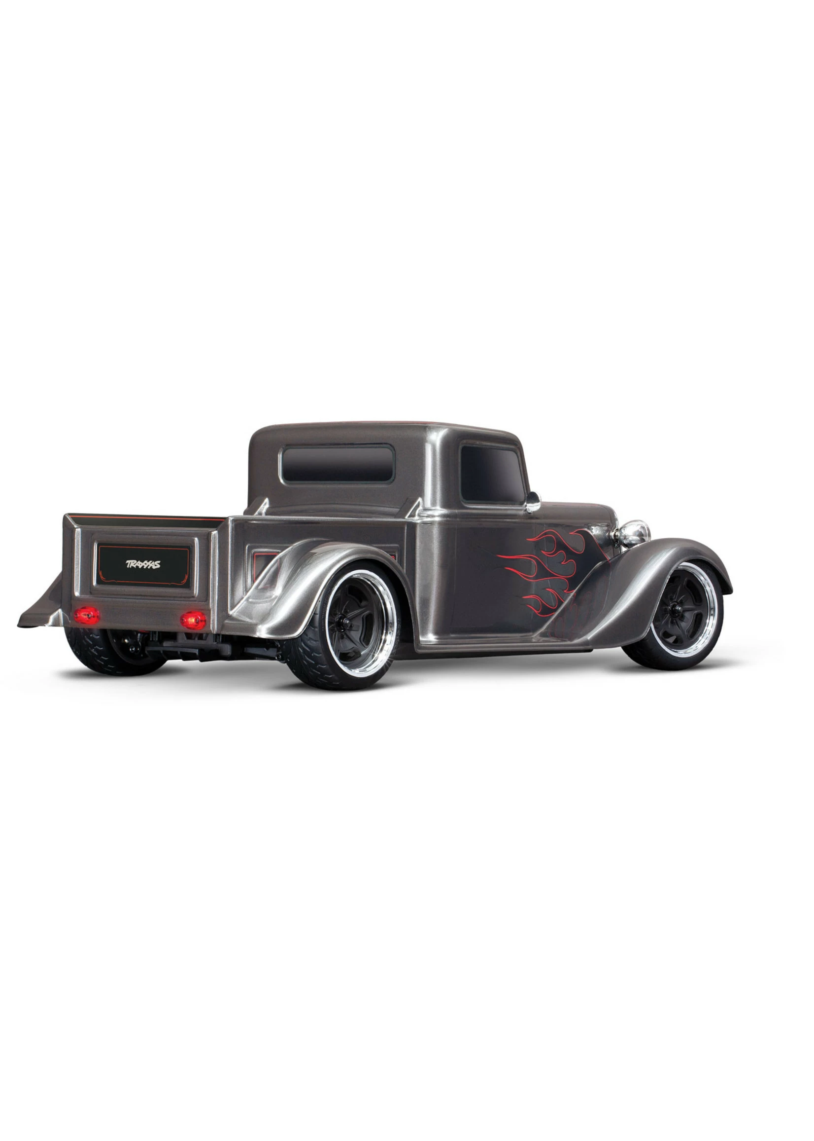 A steeply-raked chrome grille flows into the long narrow hood and aggressively chopped roof. Chrome headlights flank the sculpted fenders with full running boards. Deep, lustrous paint and wild graphics complete the package. The look is pure classic hot rod and Traxxas brings this timeless style to life in 1/10 scale.