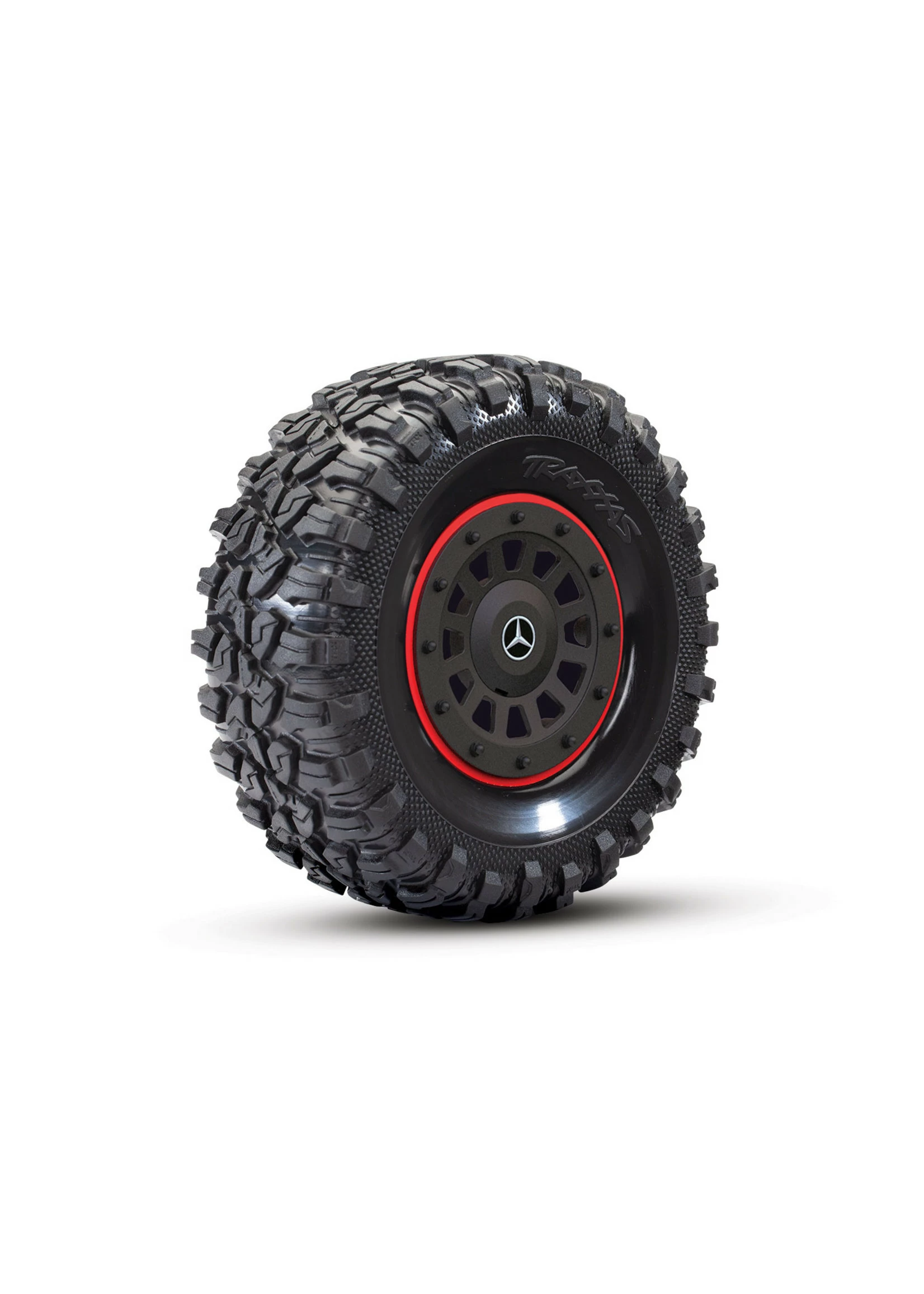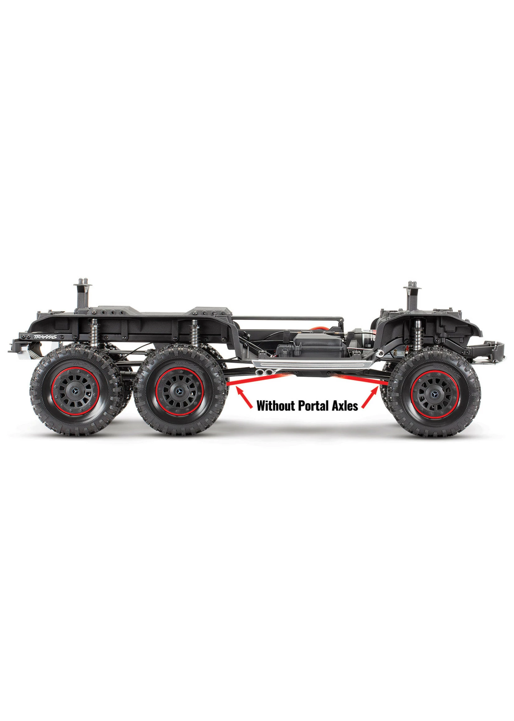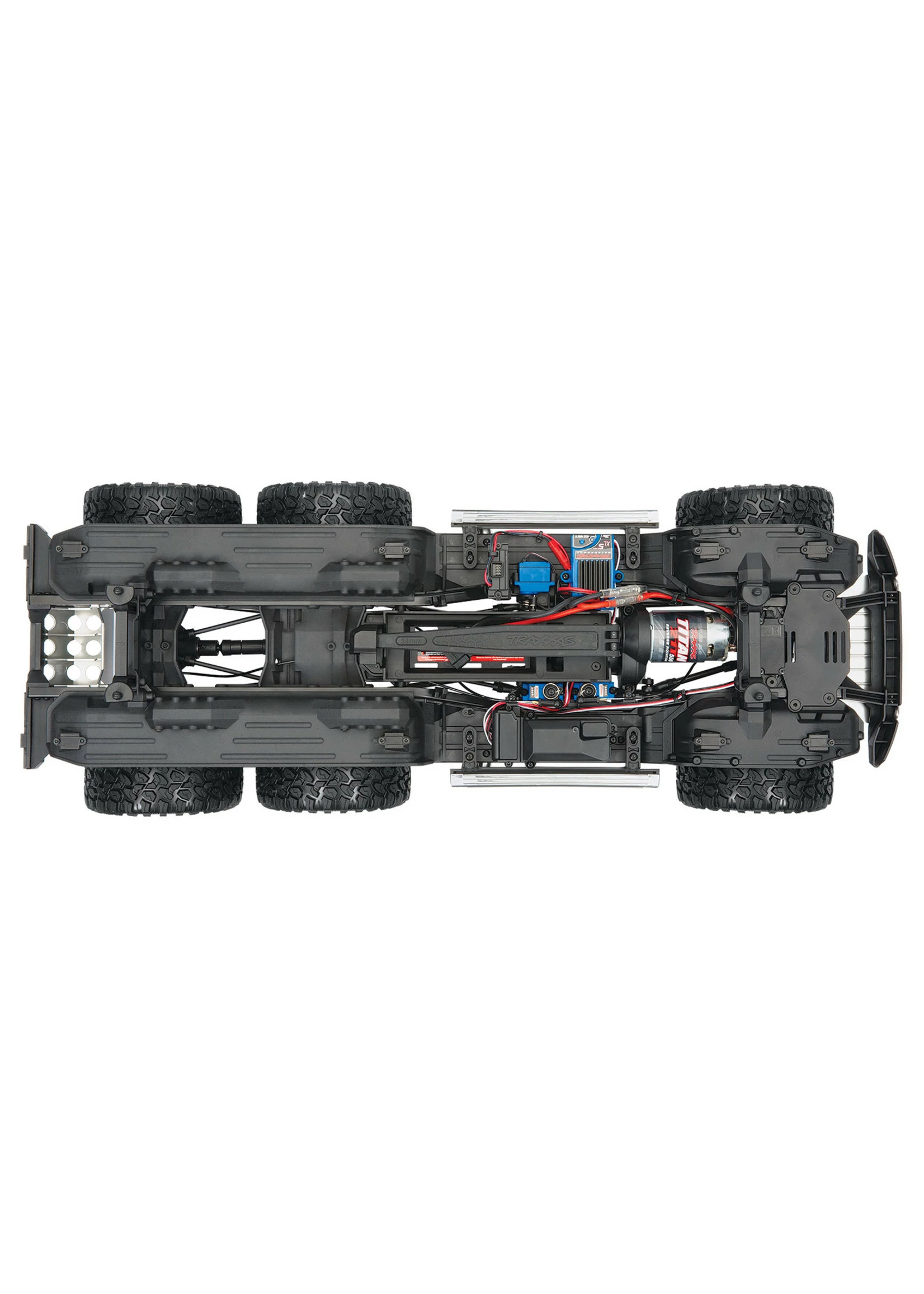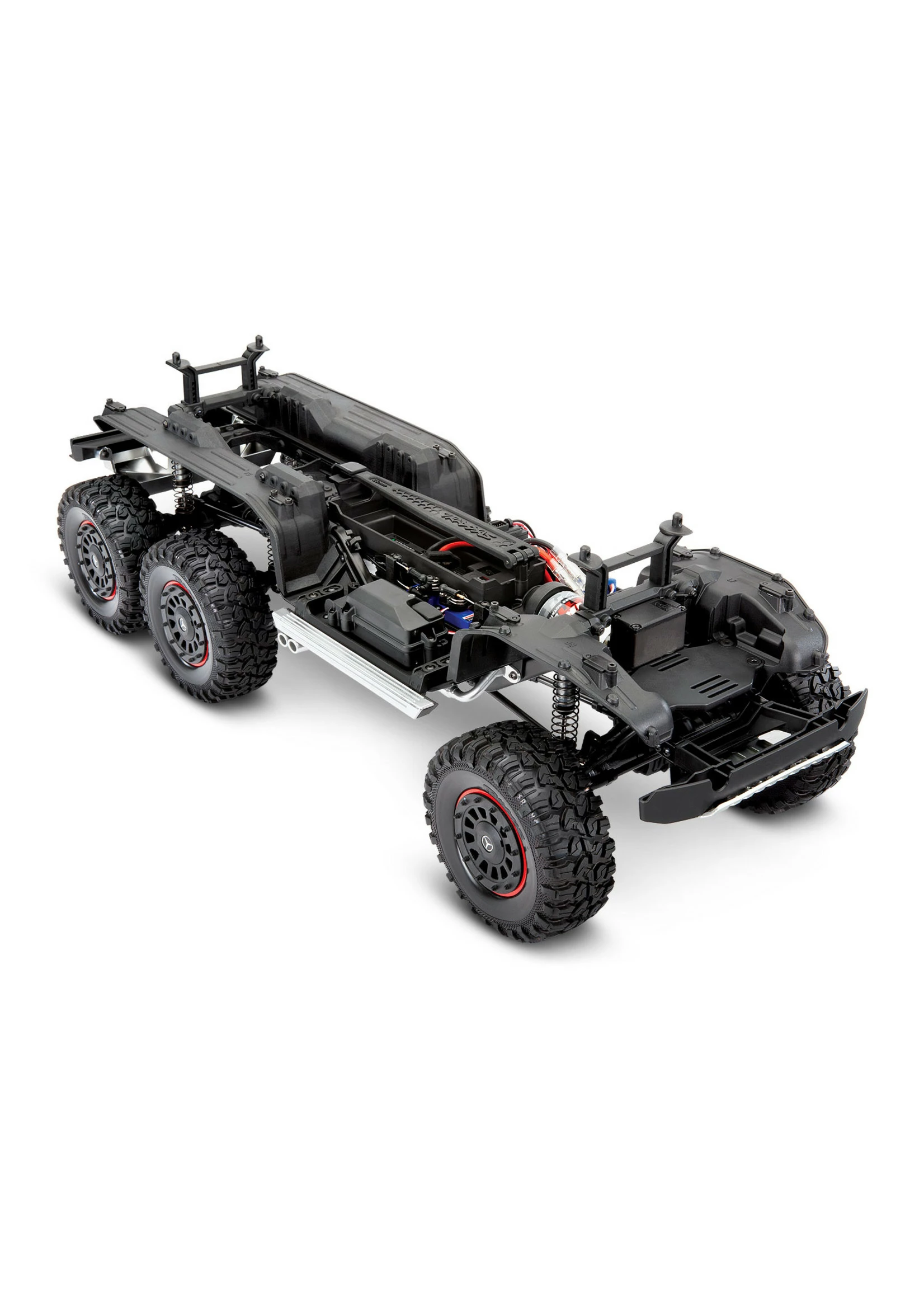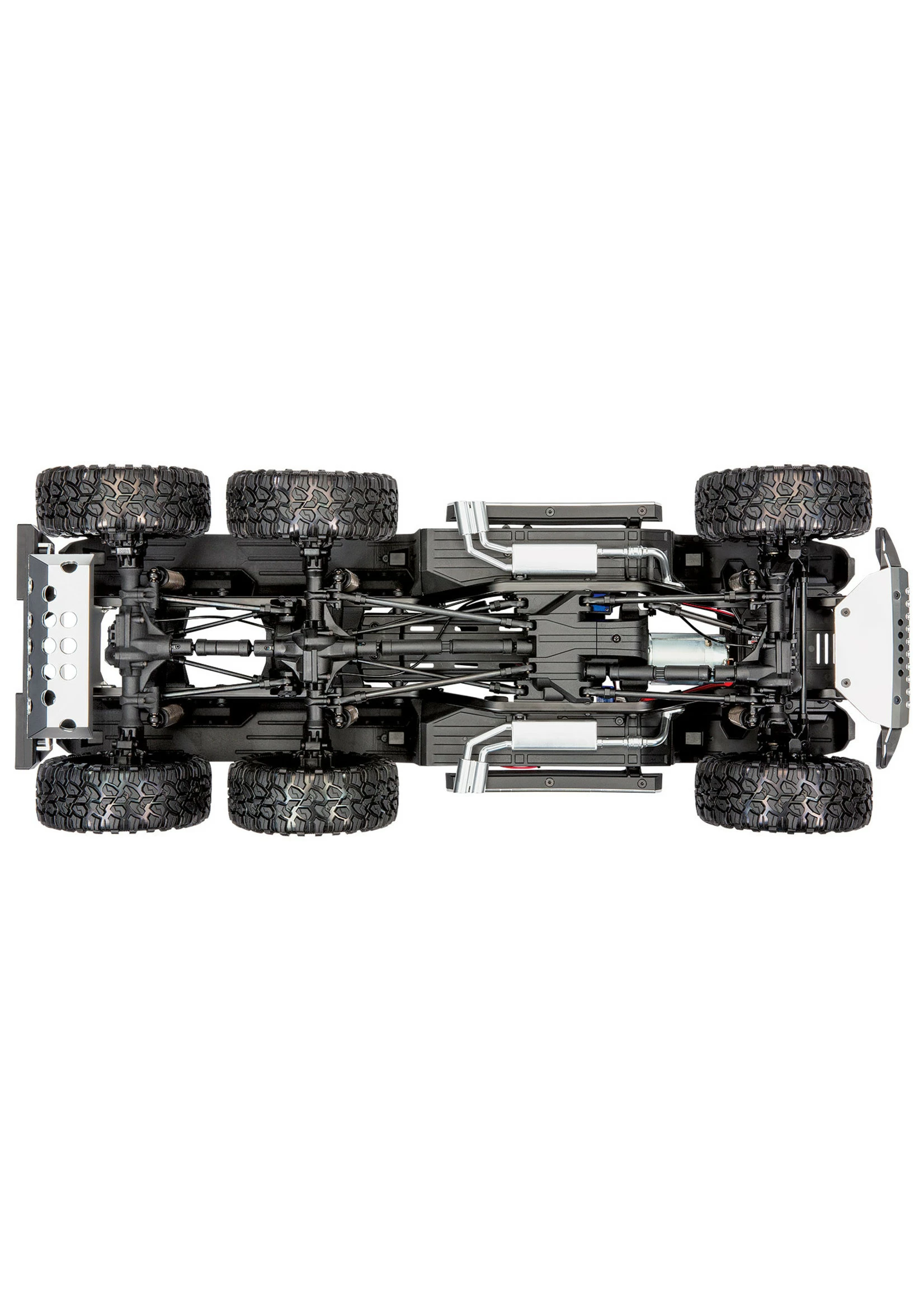 The Mercedes-Benz G 63 AMG 6×6 represents a singular vision to create the boldest and toughest all-terrain vehicle ever. Traxxas captures the spirit and no-compromise approach of the Mercedes-Benz G 63 AMG 6×6 with an officially licensed detailed scale replica built on the proven TRX-6 platform. Six drive wheels, three T-Lock™ remote-locking differentials, portal axles, high/low transmission, 6 aluminum long-travel shocks, and a stunningly accurate body with brilliant LED lighting make this the most advanced and capable RC crawler ever to hit the trail.