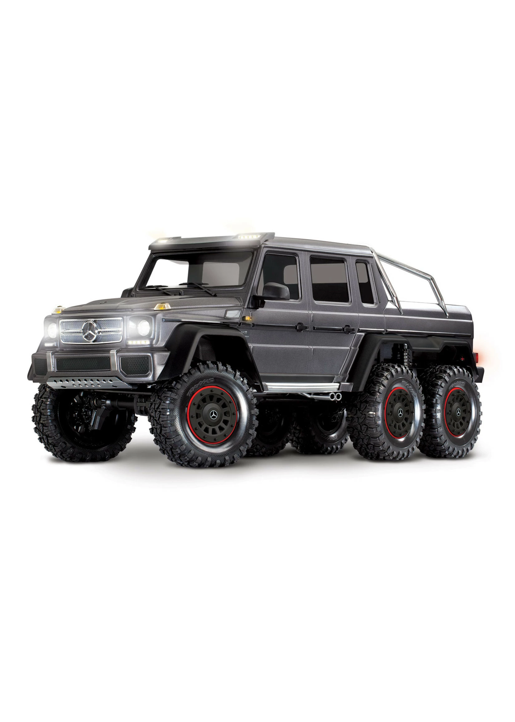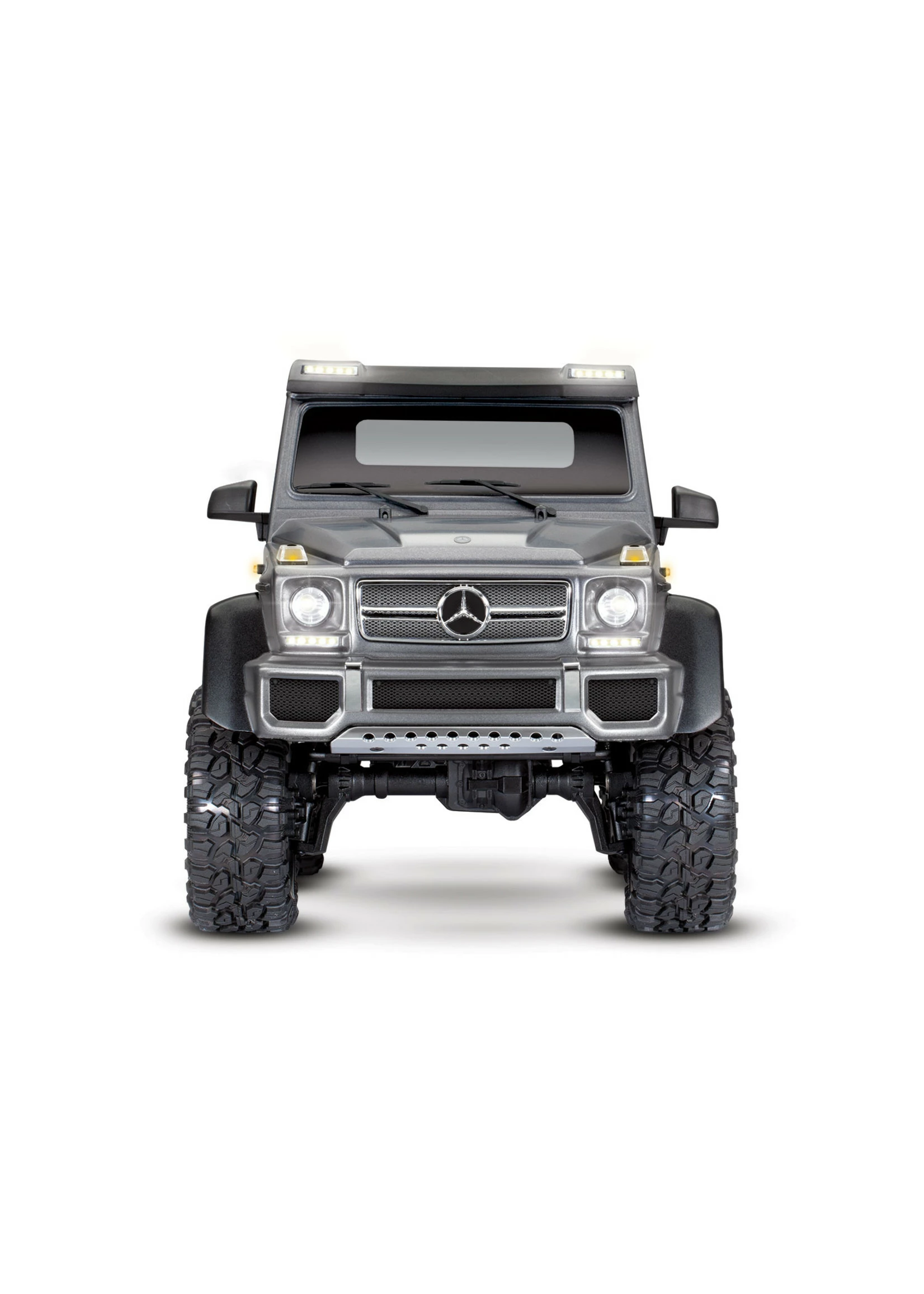 The Mercedes-Benz G 63 AMG 6×6 represents a singular vision to create the boldest and toughest all-terrain vehicle ever. Traxxas captures the spirit and no-compromise approach of the Mercedes-Benz G 63 AMG 6×6 with an officially licensed detailed scale replica built on the proven TRX-6 platform. Six drive wheels, three T-Lock™ remote-locking differentials, portal axles, high/low transmission, 6 aluminum long-travel shocks, and a stunningly accurate body with brilliant LED lighting make this the most advanced and capable RC crawler ever to hit the trail.